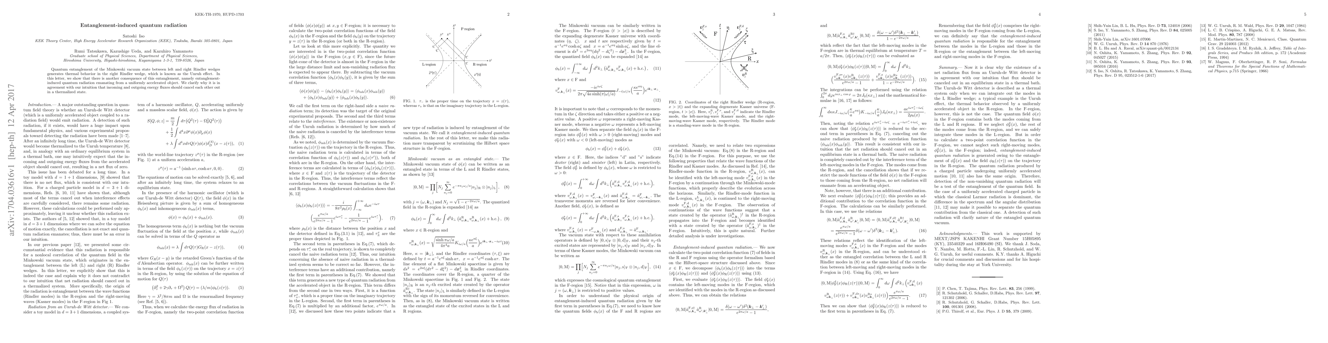 Quantum entanglement of the Minkowski vacuum state between left and right Rindler wedges generates thermal behavior in the right Rindler wedge, which is known as the Unruh effect. In this letter, we show that there is another consequence of this entanglement, namely entanglement-induced quantum radiation emanating from a uniformly accelerated object. We clarify why it is in agreement with our intuition that incoming and outgoing energy fluxes should cancel each other out in a thermalized state.