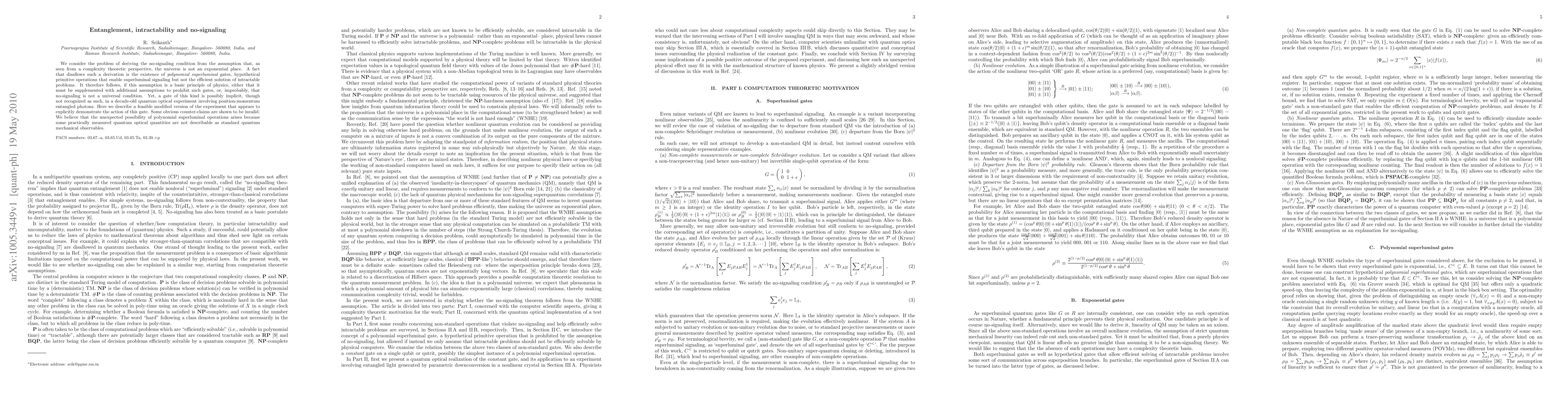 The research explores the relationship between complexity theory, entanglement, and no-signaling principles, proposing a modified quantum optical experiment to demonstrate polynomial superluminal gates.