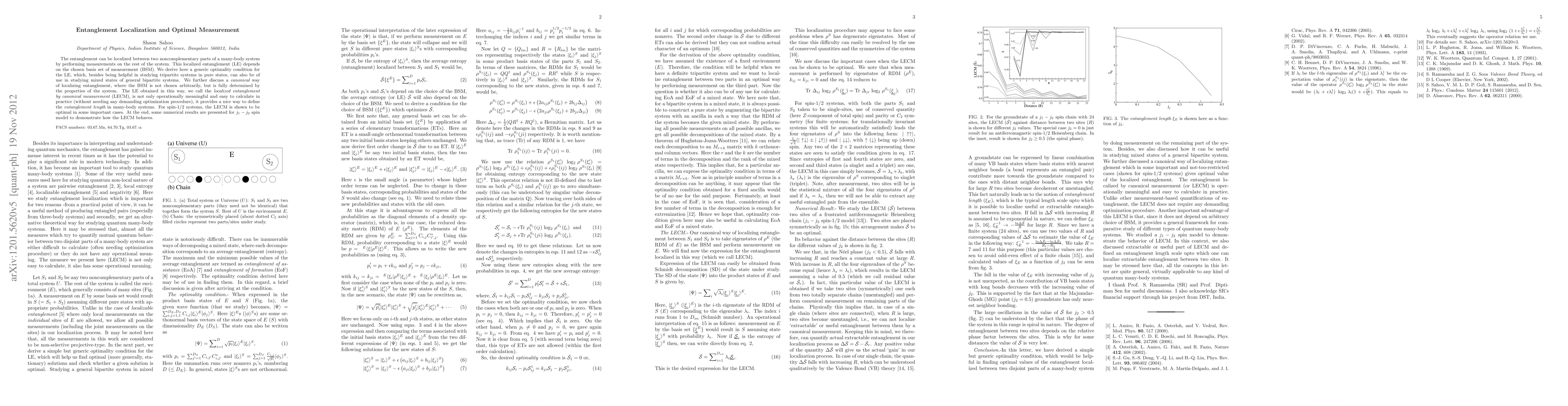 Researchers developed a method to localize entanglement in many-body systems by measuring one part of the system, finding that this localization can provide useful insights into entanglement properties.