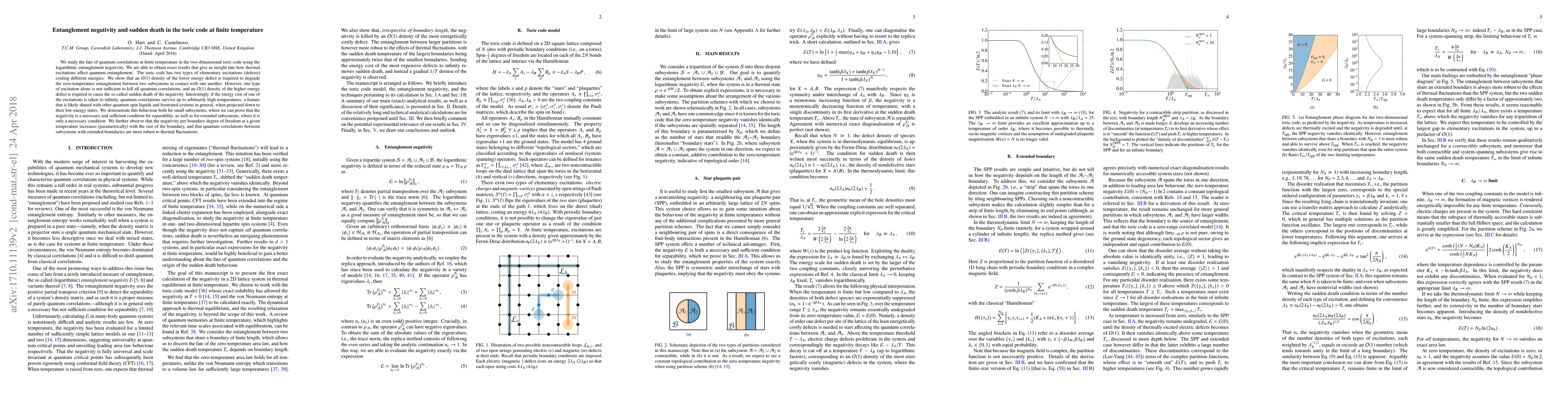 This paper investigates how thermal excitations in the toric code affect quantum entanglement, finding that a certain density of lower energy defects degrades entanglement while higher energy defects are needed for "sudden death." The study reveals that quantum correlations can persist at high temperatures if the energy cost of one type of defect is infinitely high.