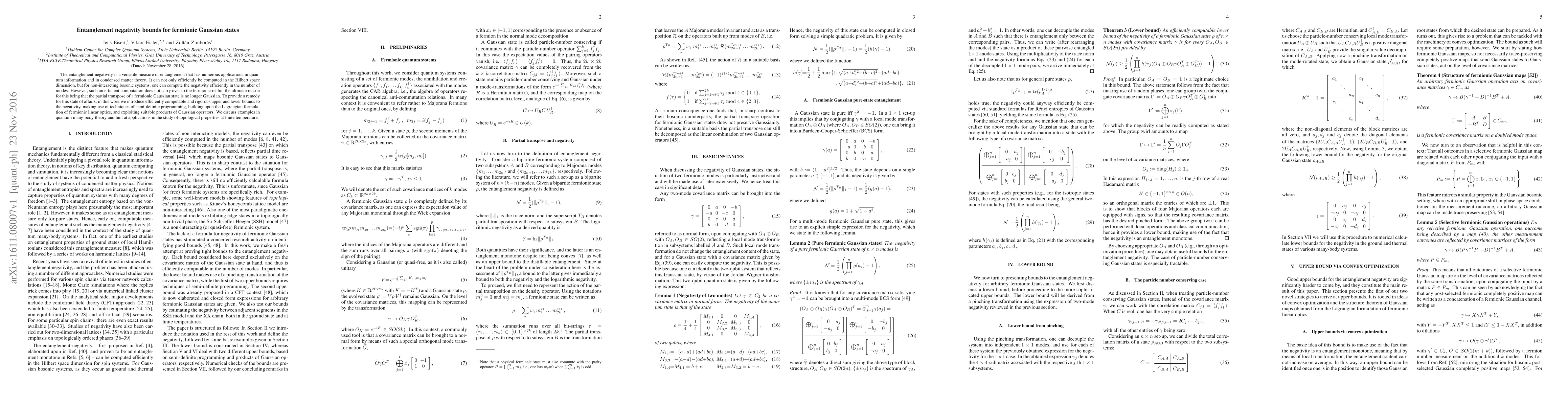 The entanglement negativity is a versatile measure of entanglement that has numerous applications in quantum information and in condensed matter theory. It can not only efficiently be computed in the Hilbert space dimension, but for non-interacting bosonic systems, one can compute the negativity efficiently in the number of modes. However, such an efficient computation does not carry over to the fermionic realm, the ultimate reason for this being that the partial transpose of a fermionic Gaussian state is no longer Gaussian. To provide a remedy for this state of affairs, in this work we introduce efficiently computable and rigorous upper and lower bounds to the negativity, making use of techniques of semi-definite programming, building upon the Lagrangian formulation of fermionic linear optics, and exploiting suitable products of Gaussian operators. We discuss examples in quantum many-body theory and hint at applications in the study of topological properties at finite temperature.