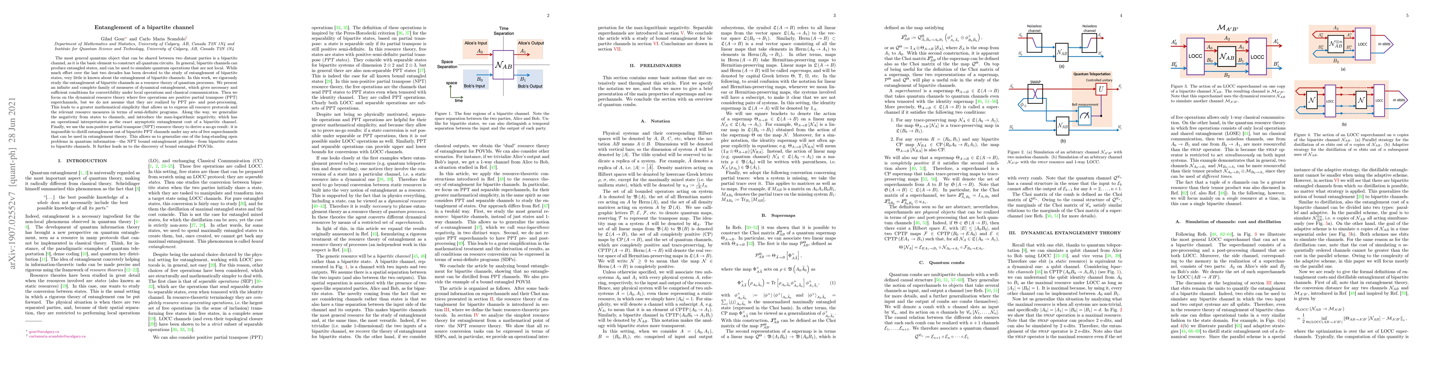 This paper rigorously explores the entanglement of bipartite quantum channels, presenting a complete family of dynamical entanglement measures. It introduces the max-logarithmic negativity and proves that entanglement cannot be distilled from bipartite PPT channels, extending the NPT bound entanglement problem to channels and discovering bound entangled POVMs.