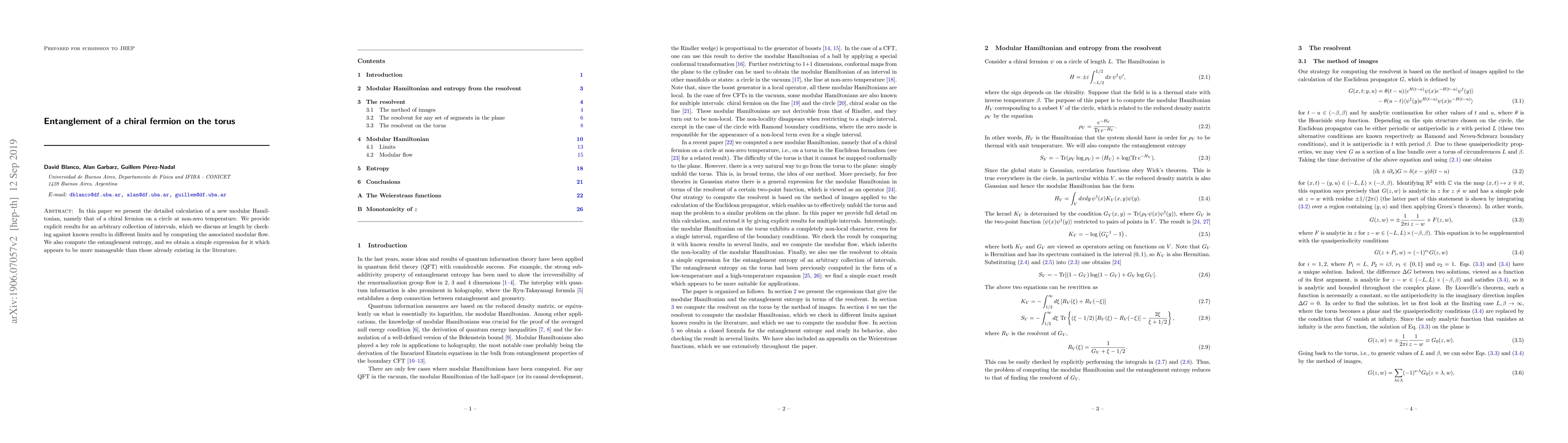 In this paper we present the detailed calculation of a new modular Hamiltonian, namely that of a chiral fermion on a circle at non-zero temperature. We provide explicit results for an arbitrary collection of intervals, which we discuss at length by checking against known results in different limits and by computing the associated modular flow. We also compute the entanglement entropy, and we obtain a simple expression for it which appears to be more manageable than those already existing in the literature.