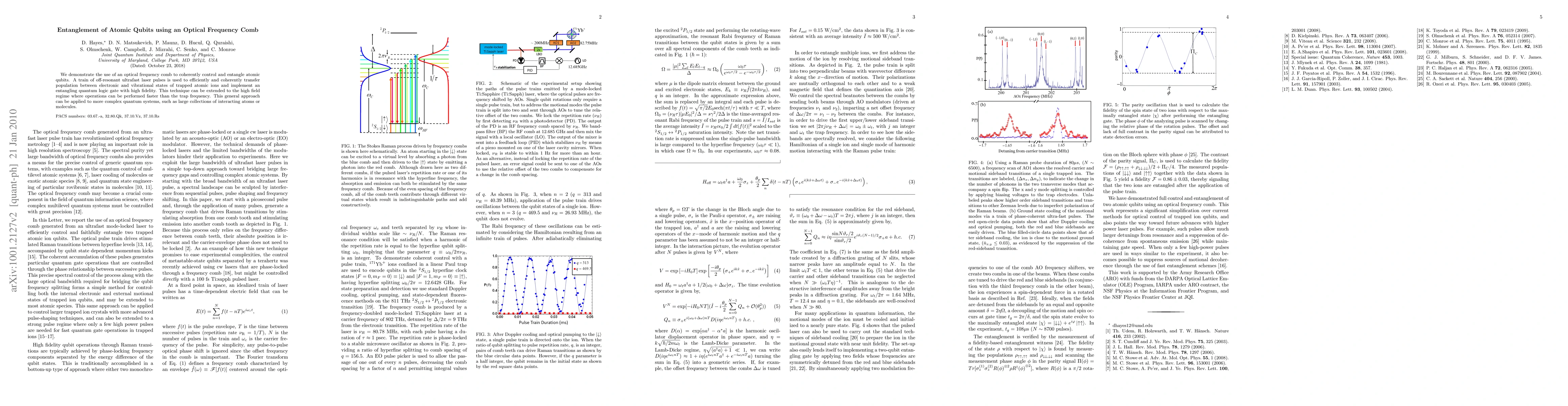 This paper demonstrates the use of an optical frequency comb to coherently control and entangle atomic qubits via off-resonant ultrafast laser pulses, achieving high-fidelity quantum logic gates. The method can be scaled to faster operations in high field regimes and applied to complex quantum systems.