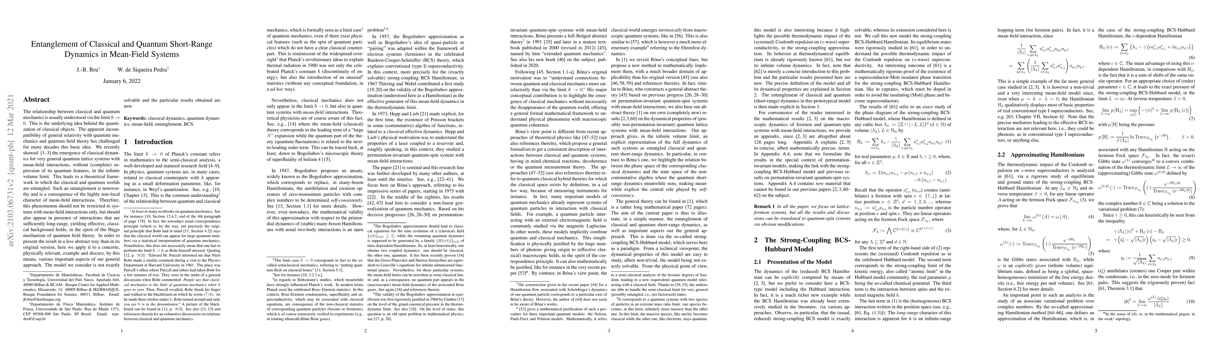 The relationship between classical and quantum mechanics is usually understood via the limit $\hbar \rightarrow 0$. This is the underlying idea behind the quantization of classical objects. The apparent incompatibility of general relativity with quantum mechanics and quantum field theory has challenged for many decades this basic idea. We recently showed the emergence of classical dynamics for very general quantum lattice systems with mean-field interactions, without (complete) supression of its quantum features, in the infinite volume limit. This leads to a theoretical framework in which the classical and quantum worlds are entangled. Such an entanglement is noteworthy and is a consequence of the highly non-local character of mean-field interactions. Therefore, this phenomenon should not be restricted to systems with mean-field interactions only, but should also appear in presence of interactions that are sufficiently long-range, yielding effective, classical background fields, in the spirit of the Higgs mechanism of quantum field theory. In order to present the result in a less abstract way than in its original version, here we apply it to a concrete, physically relevant, example and discuss, by this means, various important aspects of our general approach. The model we consider is not exactly solvable and the particular results obtained are new.