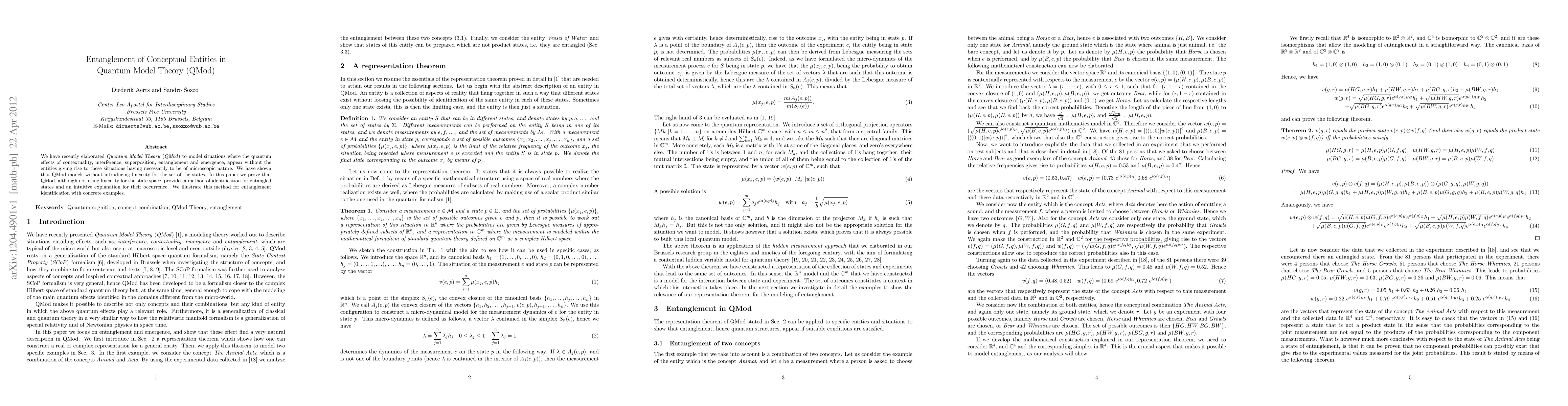 We have recently elaborated 'Quantum Model Theory' (QMod) to model situations where the quantum effects of contextuality, interference, superposition, entanglement and emergence, appear without the entities giving rise to these situations having necessarily to be of microscopic nature. We have shown that QMod models without introducing linearity for the set of the states. In this paper we prove that QMod, although not using linearity for the state space, provides a method of identification for entangled states and an intuitive explanation for their occurrence. We illustrate this method for entanglement identification with concrete examples.