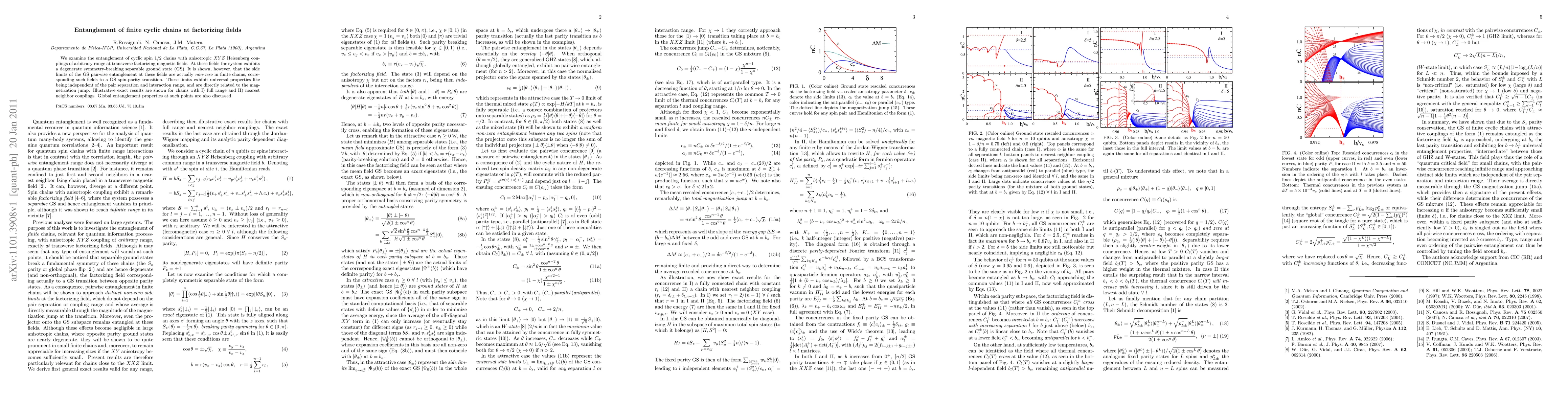 Researchers found that at specific magnetic fields, entanglement in finite cyclic chains has non-zero side limits, even in the ground state of a spin system. These limits exhibit universal properties and are related to the magnetization jump.