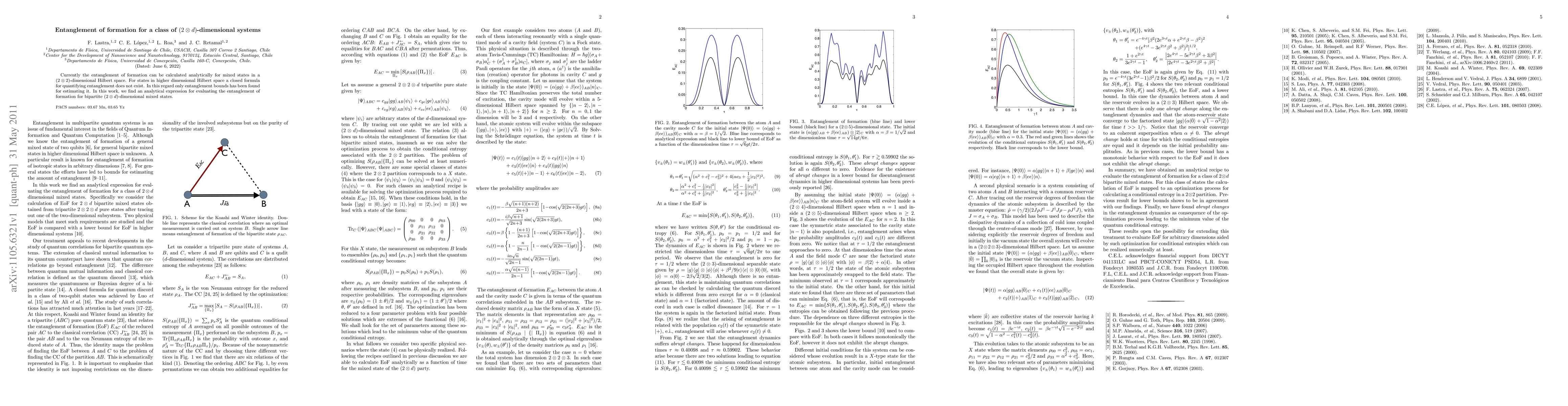 Currently the entanglement of formation can be calculated analytically for mixed states in a $(2\otimes2)$-dimensional Hilbert space. For states in higher dimensional Hilbert space a closed formula for quantifying entanglement does not exist. In this regard only entanglement bounds has been found for estimating it. In this work, we find an analytical expression for evaluating the entanglement of formation for bipartite ($2\otimes d$)-dimensional mixed states.