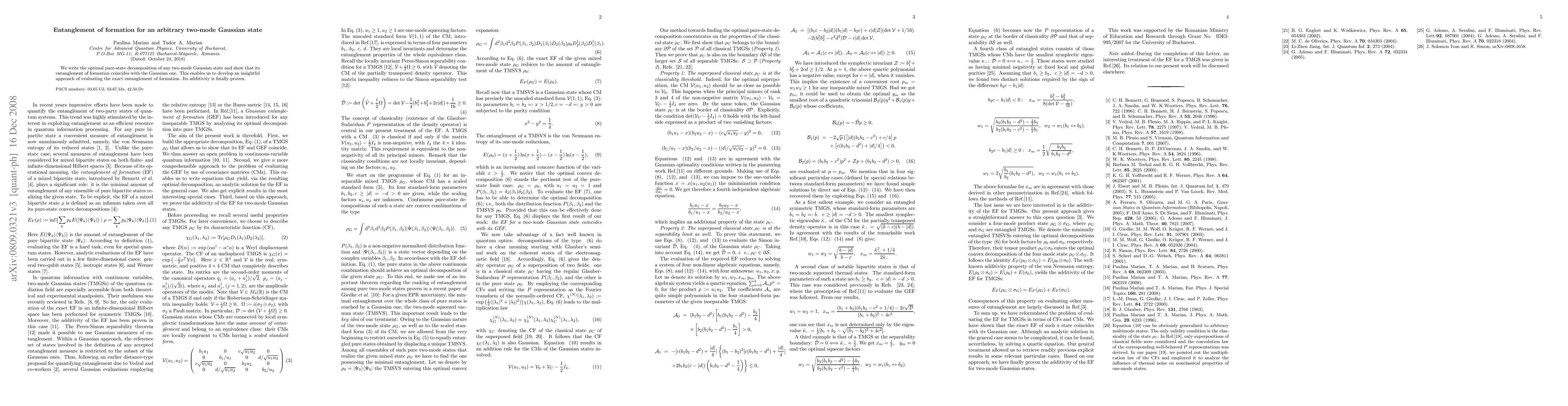 This paper presents the optimal pure-state decomposition for any two-mode Gaussian state, demonstrating that its entanglement of formation matches the Gaussian one. The study also proves the additivity of this entanglement.