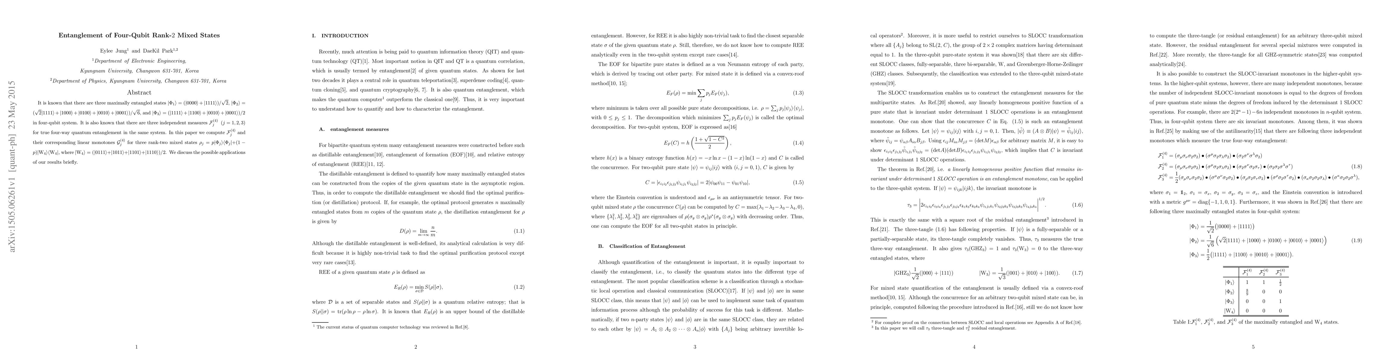 Researchers studied four-qubit rank-2 mixed states and found three measures of true four-way quantum entanglement, which can help understand applications in quantum computing and quantum information processing.