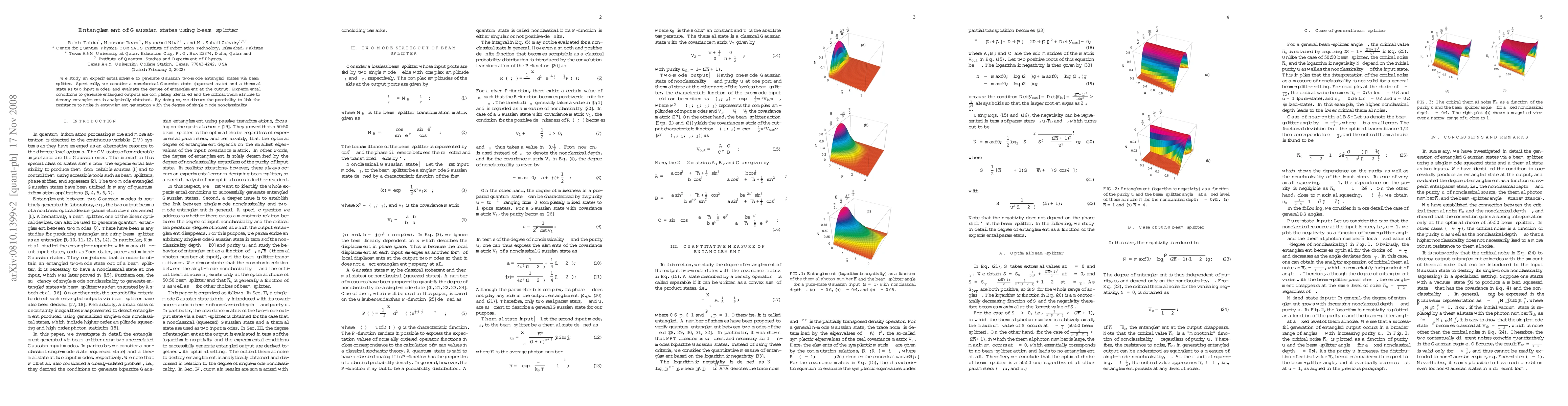 This paper presents an experimental scheme for generating Gaussian two-mode entangled states using a beam splitter with a squeezed state and thermal state as inputs. It identifies conditions for successful entanglement and analyzes the thermal noise threshold that destroys entanglement, linking noise resistance to single-mode nonclassicality.