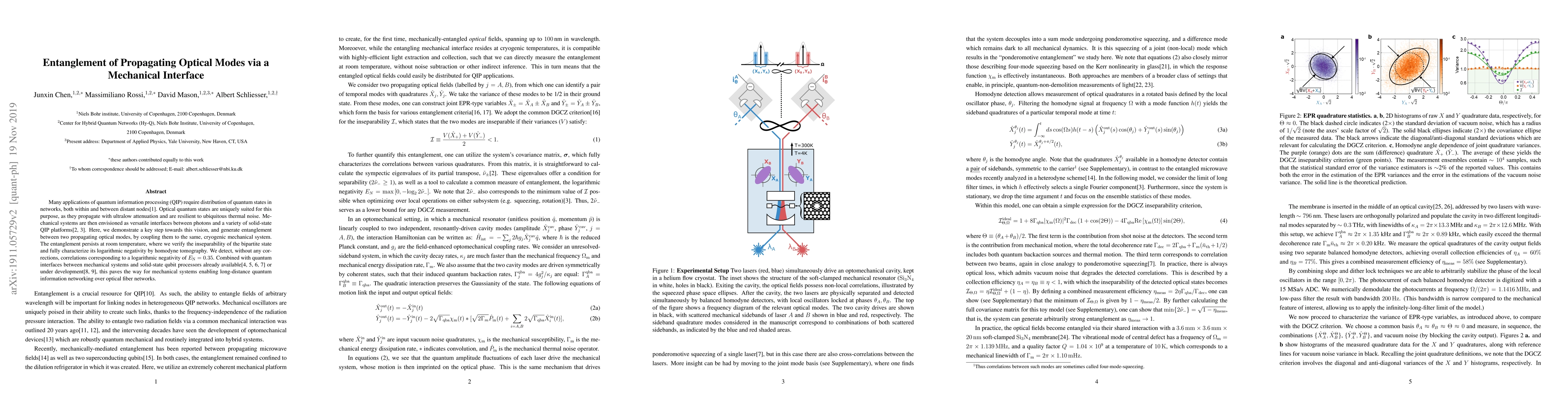 The paper presents a novel approach to entangling optical modes using a mechanical interface, characterizing the entanglement through homodyne tomography and verifying it via logarithmic negativity.