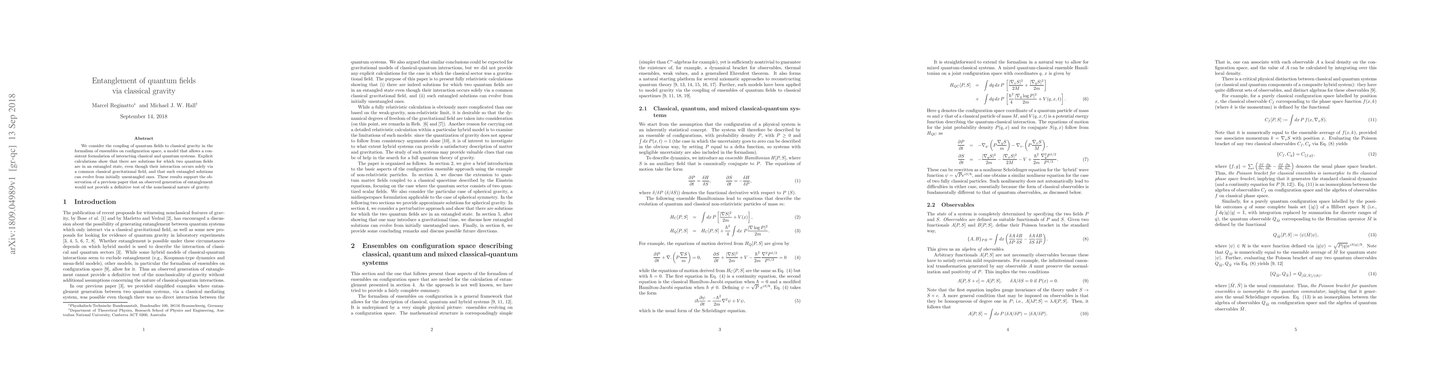 This paper explores how quantum fields can become entangled through interactions mediated solely by a classical gravitational field, demonstrating that entanglement can arise even without direct quantum interactions. These findings suggest that entanglement via classical gravity does not necessarily indicate the nonclassical nature of gravity itself.