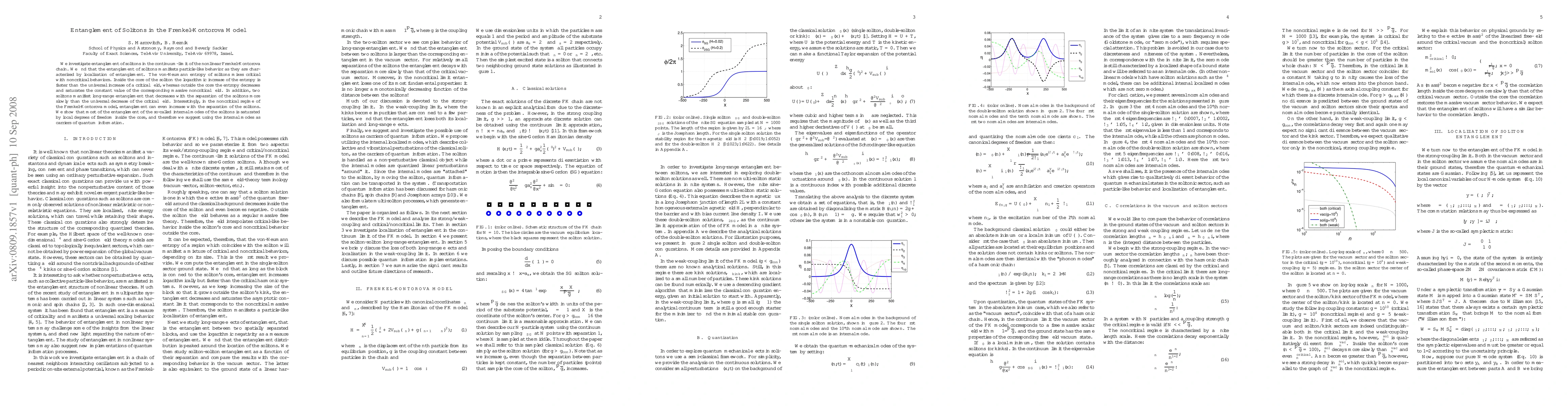This paper explores the entanglement properties of solitons in the nonlinear Frenkel-Kontorova model, revealing particle-like localization of entanglement and a unique behavior of von-Neumann entropy. It finds that internal soliton modes can serve as carriers of quantum information due to their entanglement saturation by local core degrees of freedom.