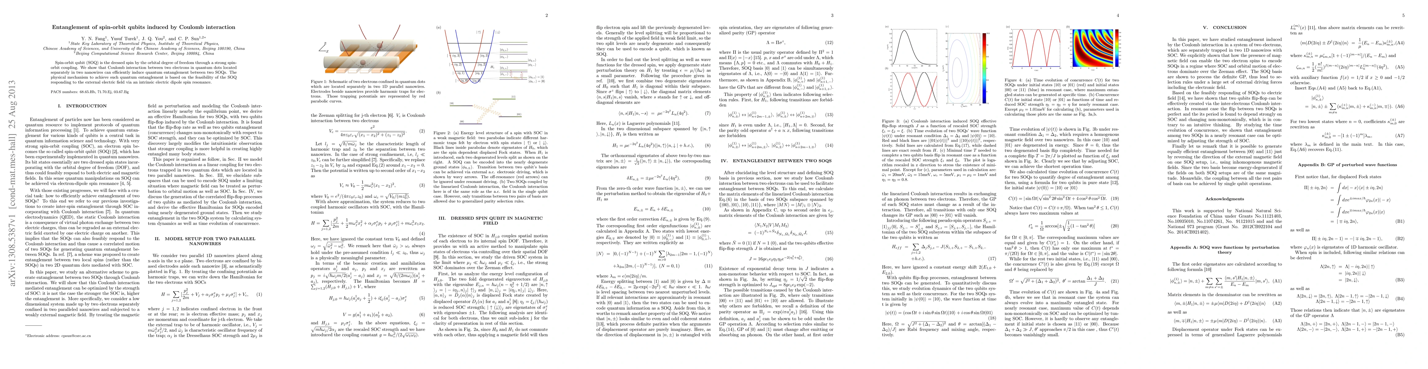 Summary: This paper demonstrates that Coulomb interaction between two electrons in separate quantum dots can induce quantum entanglement between spin-orbit qubits (SOQs), leveraging the SOQ's response to external electric fields through intrinsic electric dipole spin resonance. The study highlights a novel mechanism for achieving entanglement in nanowire-based quantum systems.