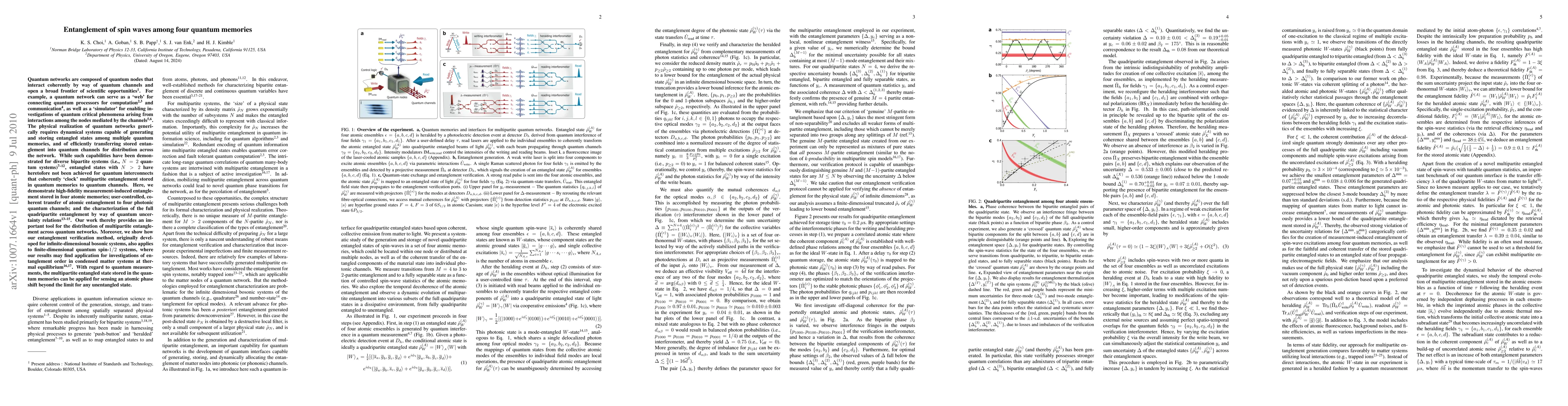 This paper demonstrates high-fidelity entanglement among four quantum memories and their coherent transfer to photonic quantum channels, enabling the distribution of quadripartite entanglement across quantum networks. The study characterizes the entanglement using quantum uncertainty relations, providing a significant advancement in multipartite quantum interconnects.