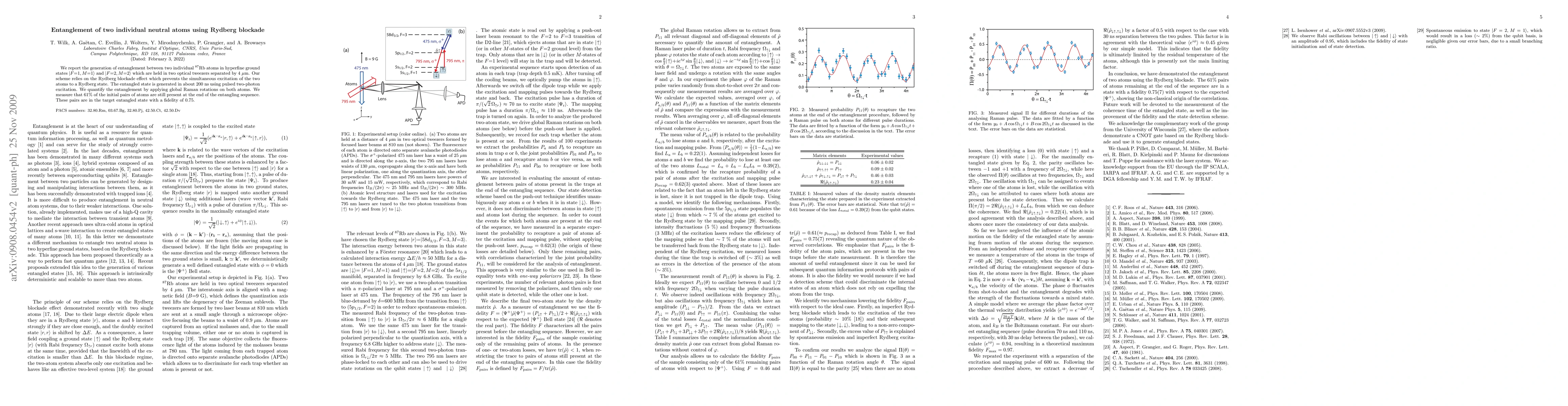 The paper presents a novel method for generating entanglement between two individual neutral atoms using Rydberg blockade, with high fidelity and short generation time.