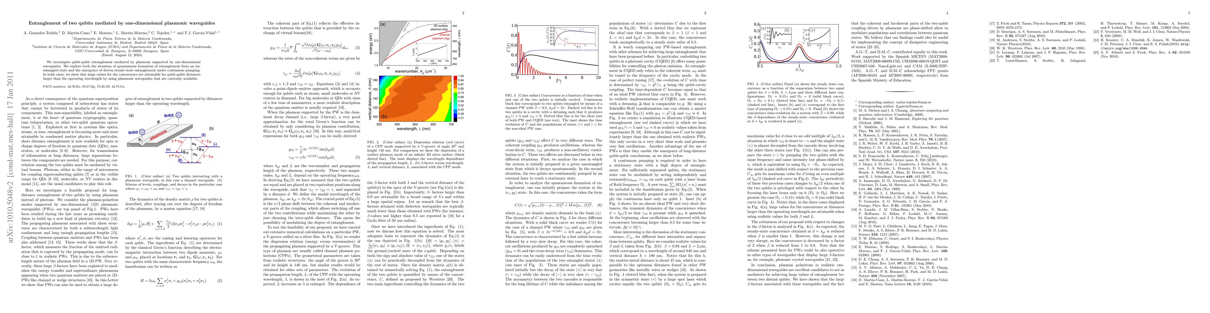 This paper explores qubit-qubit entanglement mediated by plasmonic waveguides, demonstrating large concurrence values for qubit distances exceeding the operating wavelength. It investigates both spontaneous and driven entanglement scenarios, showing feasible large-scale entanglement using current waveguide technology.