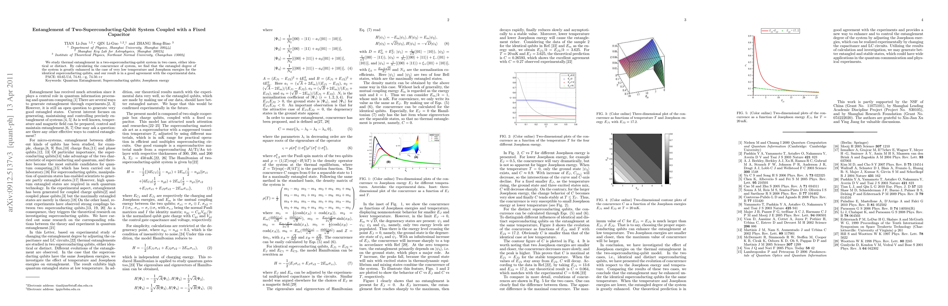 We study thermal entanglement in a two-superconducting-qubit system in two cases, either identical or distinct. By calculating the concurrence of system, we find that the entangled degree of the system is greatly enhanced in the case of very low temperature and Josephson energies for the identical superconducting qubits, and our result is in a good agreement with the experimental data.