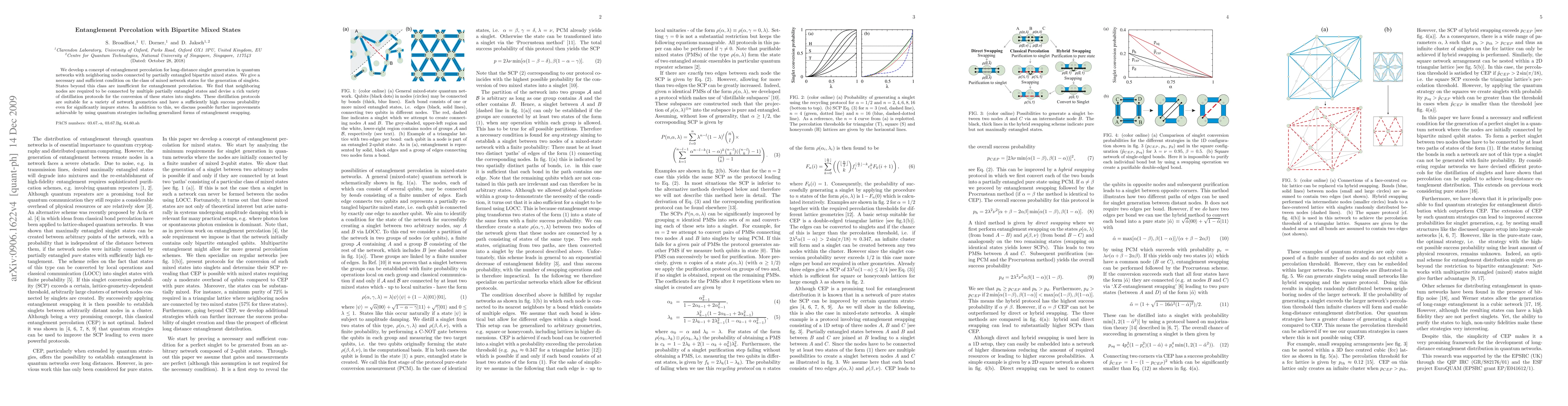 Researchers developed a method for entanglement percolation in quantum networks using partially entangled bipartite mixed states, enabling long-distance singlet generation with high success probability even in significantly impure states.