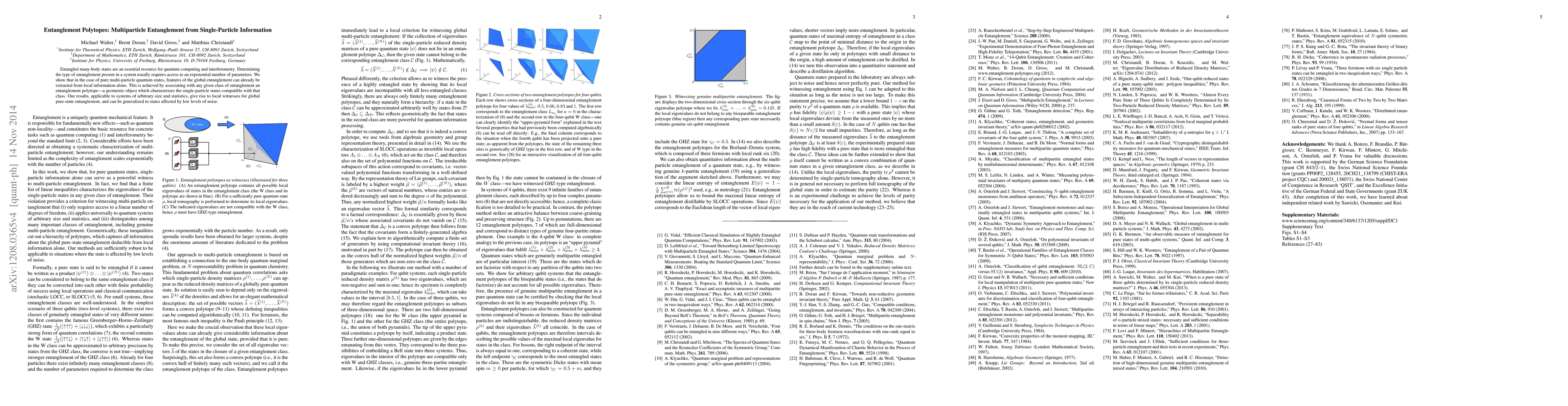 This paper demonstrates that global entanglement in pure multi-particle quantum states can be inferred from single-particle information by introducing entanglement polytopes, geometric objects characterizing compatible single-particle states. This approach provides local witnesses for detecting global entanglement and extends to noisy states.