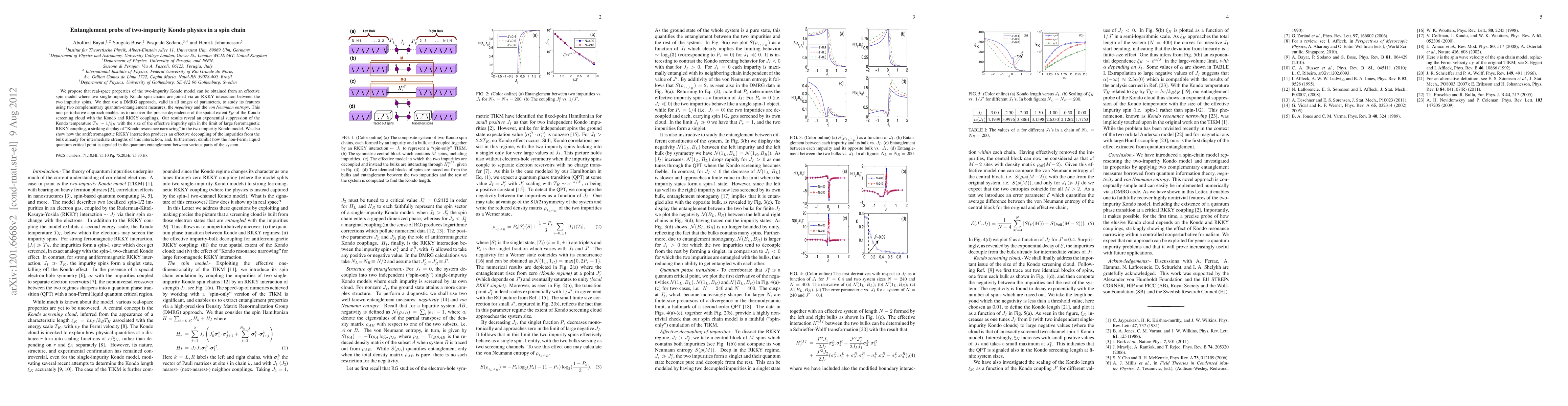 The study uses DMRG to explore entanglement in a two-impurity Kondo model, revealing an exponential decline in Kondo temperature with increasing ferromagnetic RKKY coupling, while antiferromagnetic RKKY interactions lead to impurity decoupling and signal a non-Fermi liquid quantum critical point via quantum entanglement.