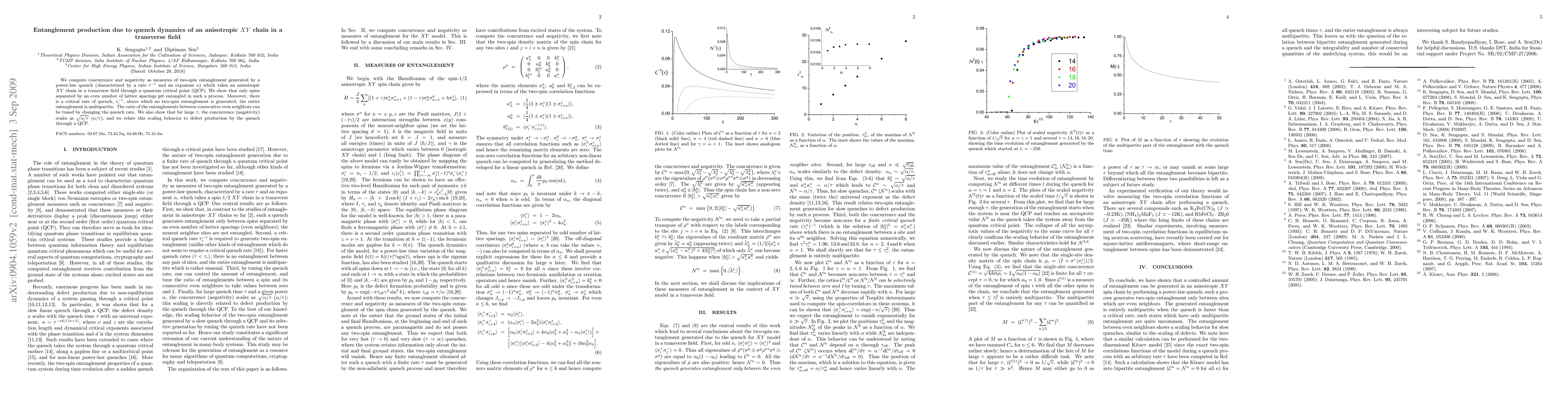 This paper investigates entanglement production in an anisotropic XY chain under a power-law quench through a quantum critical point, finding that only even-neighbor pairs become entangled. It reveals a critical quench rate above which no two-site entanglement occurs, with the entanglement ratio between even neighbors tunable by the quench rate.
