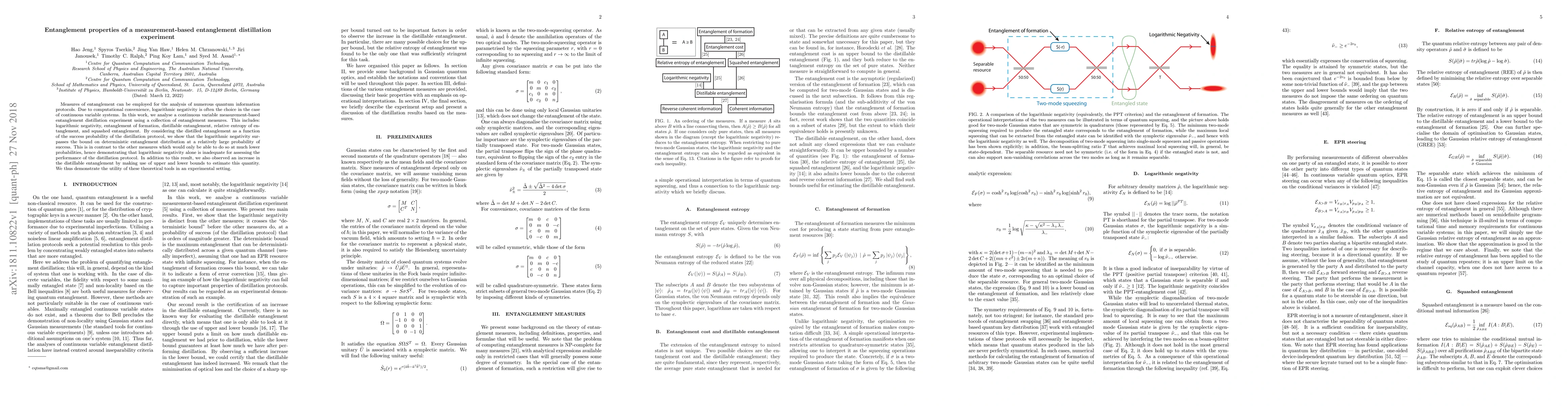 This paper analyzes a continuous variable measurement-based entanglement distillation experiment using various entanglement measures, showing that logarithmic negativity surpasses bounds on deterministic entanglement distribution at a higher success probability compared to other measures. The study also highlights the utility of theoretical tools in estimating distillable entanglement.