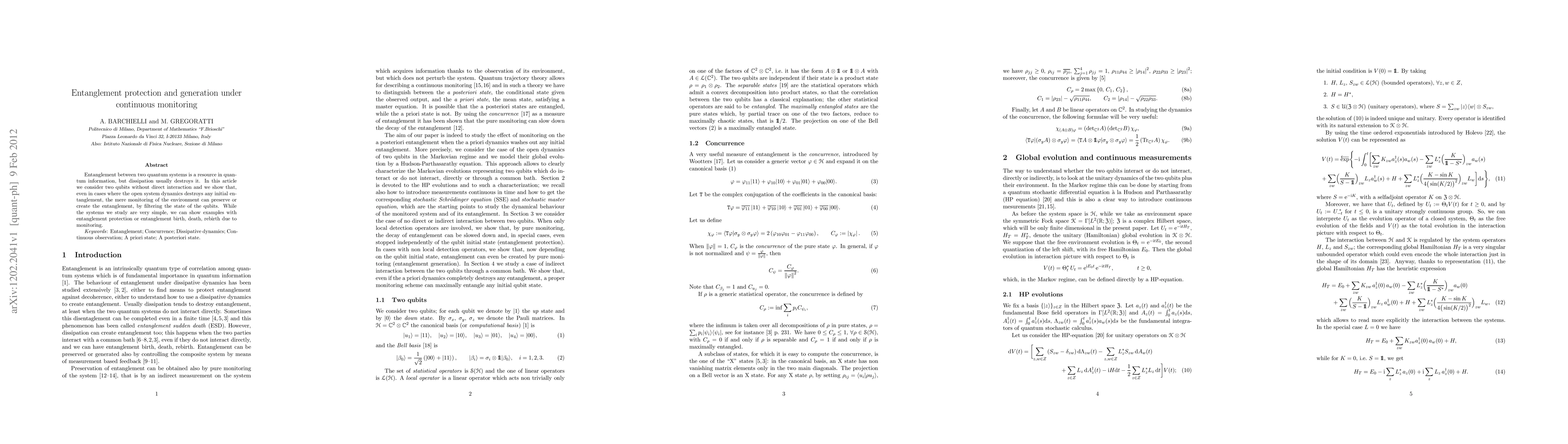 This paper explores how continuous monitoring of the environment can preserve or even generate entanglement between two non-interacting qubits, demonstrating phenomena such as entanglement protection, birth, and rebirth through environmental filtering.