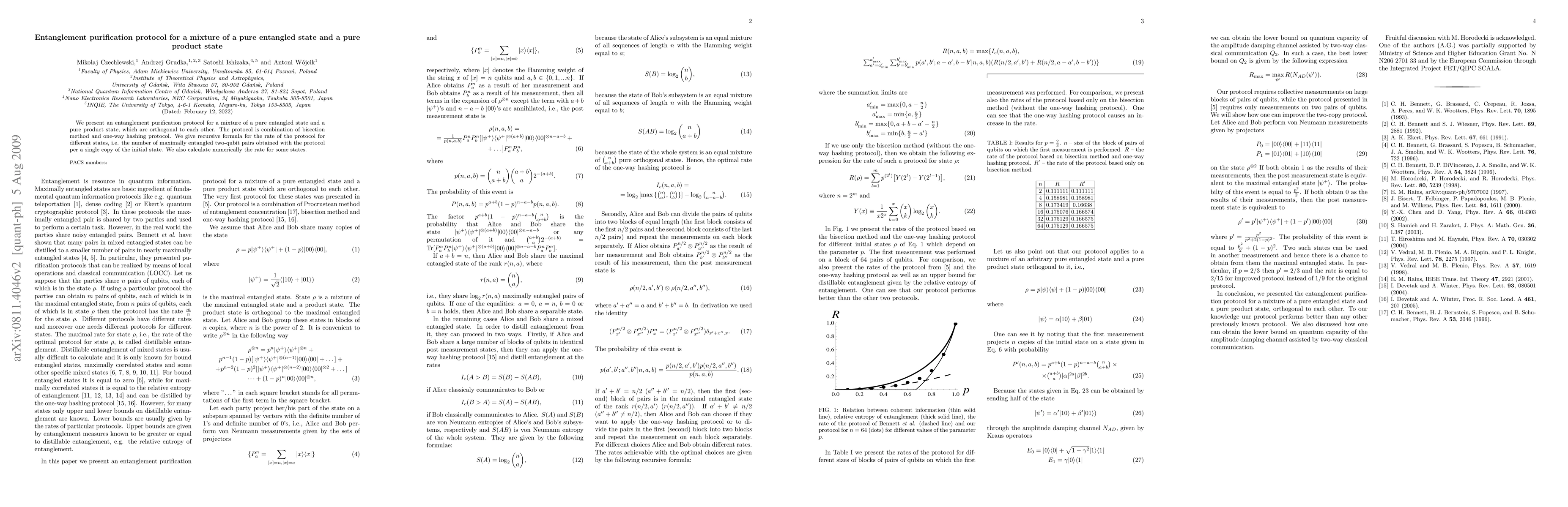 Researchers develop a protocol to purify entangled states in mixtures with product states using bisection and one-way hashing methods. The protocol increases the number of maximally entangled pairs in the initial state.
