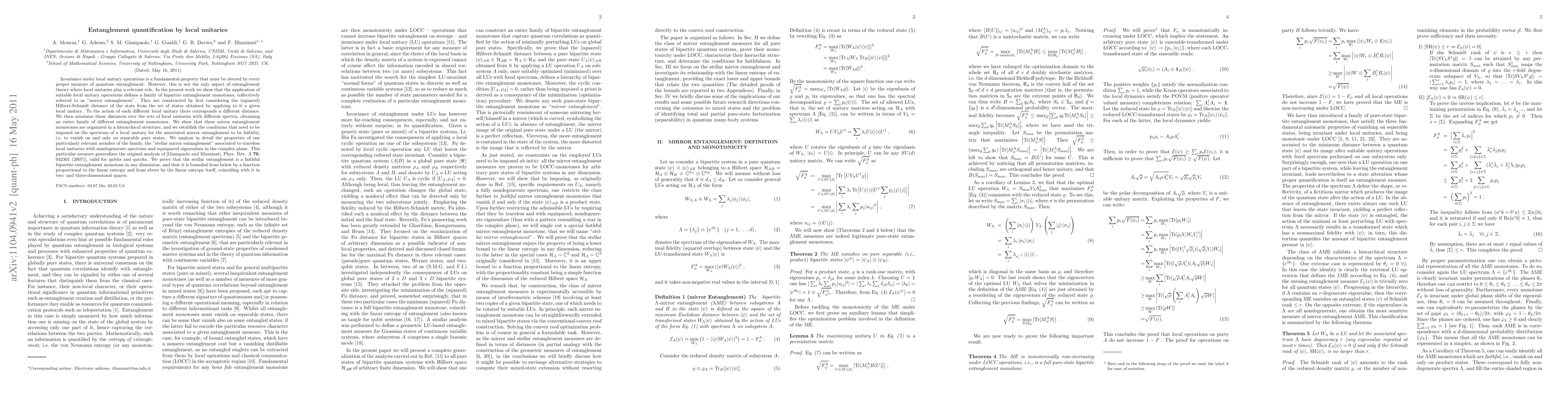 Invariance under local unitary operations is a fundamental property that must be obeyed by every proper measure of quantum entanglement. However, this is not the only aspect of entanglement theory where local unitaries play a relevant role. In the present work we show that the application of suitable local unitary operations defines a family of bipartite entanglement monotones, collectively referred to as "mirror entanglement". They are constructed by first considering the (squared) Hilbert-Schmidt distance of the state from the set of states obtained by applying to it a given local unitary. To the action of each different local unitary there corresponds a different distance. We then minimize these distances over the sets of local unitaries with different spectra, obtaining an entire family of different entanglement monotones. We show that these mirror entanglement monotones are organized in a hierarchical structure, and we establish the conditions that need to be imposed on the spectrum of a local unitary for the associated mirror entanglement to be faithful, i.e. to vanish on and only on separable pure states. We analyze in detail the properties of one particularly relevant member of the family, the "stellar mirror entanglement" associated to traceless local unitaries with nondegenerate spectrum and equispaced eigenvalues in the complex plane. This particular measure generalizes the original analysis of [Giampaolo and Illuminati, Phys. Rev. A 76, 042301 (2007)], valid for qubits and qutrits. We prove that the stellar entanglement is a faithful bipartite entanglement monotone in any dimension, and that it is bounded from below by a function proportional to the linear entropy and from above by the linear entropy itself, coinciding with it in two- and three-dimensional spaces.