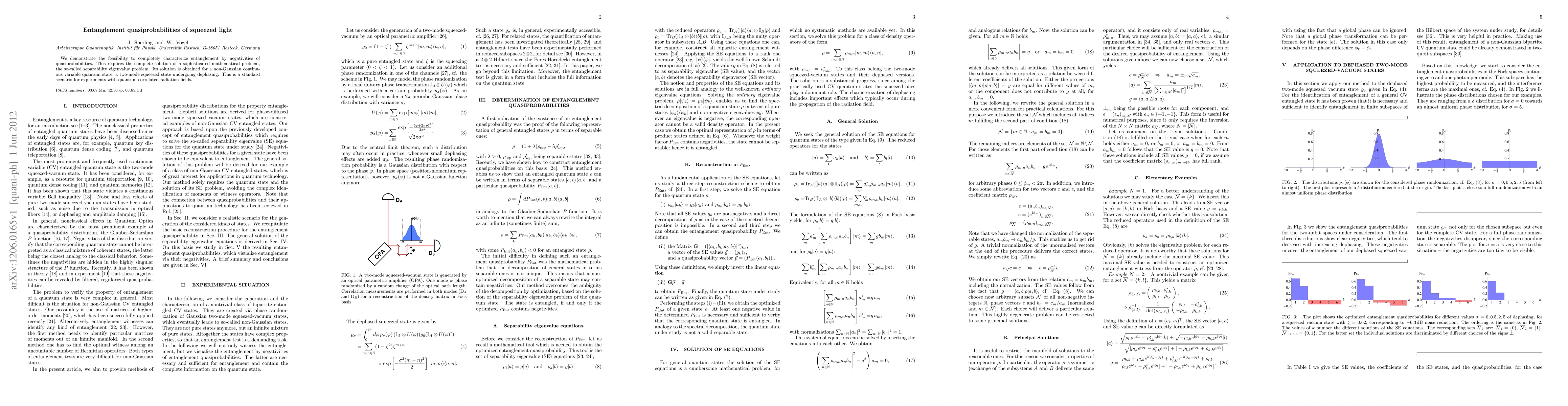 This paper presents a method to fully characterize entanglement using quasiprobabilities and negativities, solving the complex separability eigenvalue problem for a non-Gaussian two-mode squeezed state experiencing dephasing, relevant for quantum-correlated radiation experiments.