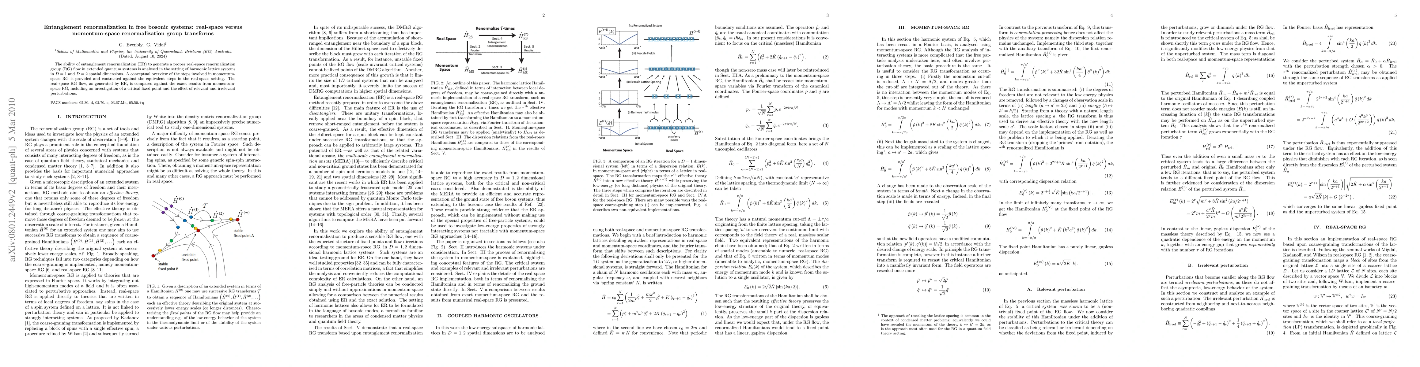 This paper analyzes entanglement renormalization (ER) in free bosonic systems to generate real-space renormalization group (RG) flows, comparing it with momentum-space RG in 1D and 2D lattice systems. It contrasts the conceptual steps of both methods and investigates their respective critical fixed points and perturbation effects.