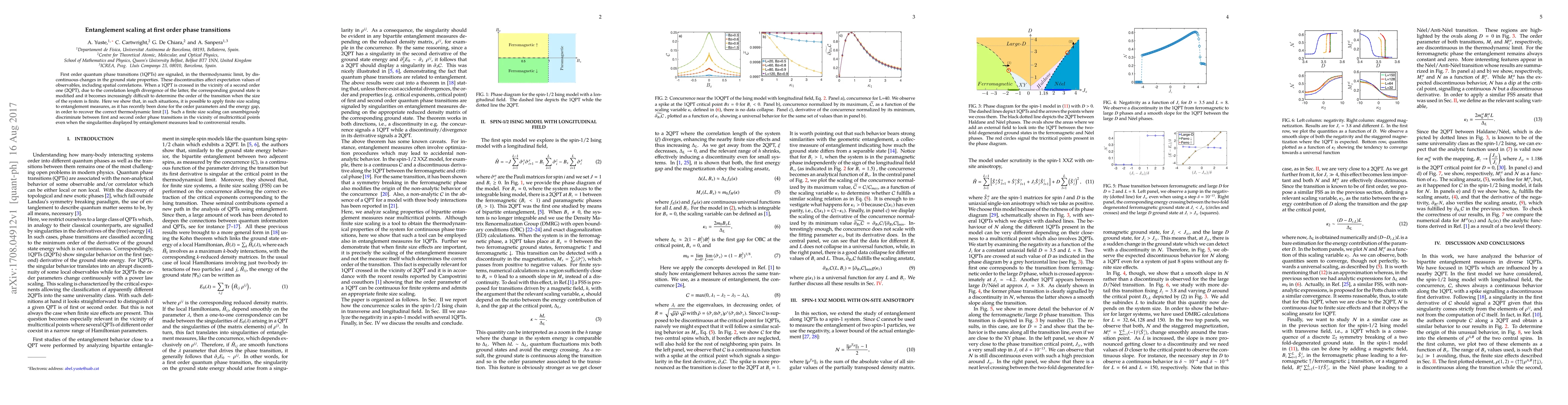 This paper investigates how entanglement measures can be used to distinguish first order quantum phase transitions (1QPTs) from second order ones (2QPTs) near multicritical points, employing finite size scaling to overcome challenges posed by the correlation length divergence in 2QPTs. The study shows that this approach can unambiguously identify the transition order despite entanglement singularities.