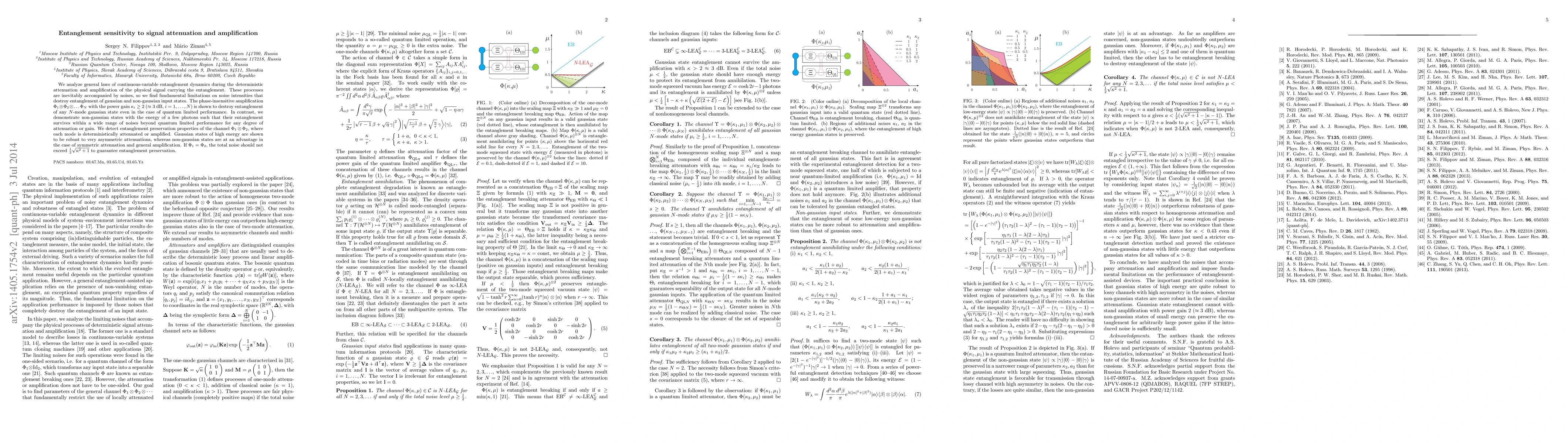 This paper explores how entanglement in continuous-variable systems is affected by signal attenuation and amplification, revealing that Gaussian states lose entanglement under certain amplifications, while non-Gaussian states with few photons can maintain entanglement under broader noise conditions. The study finds that asymmetric attenuations preserve entanglement in high-energy Gaussian states, whereas symmetric attenuations and general amplifications benefit non-Gaussian states, with specific noise thresholds for entanglement preservation.