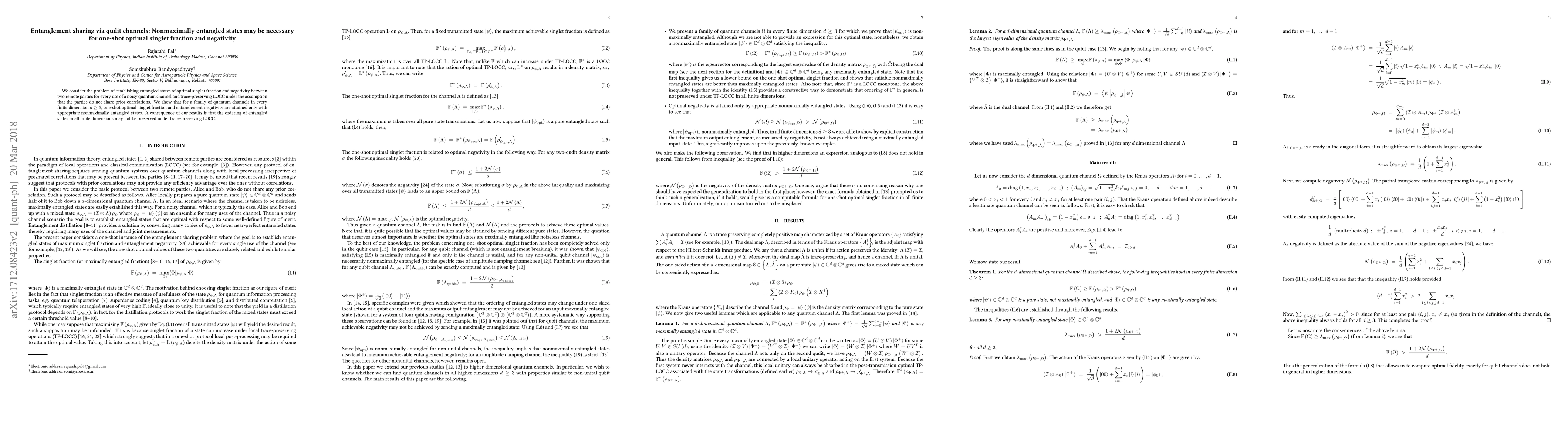 This paper investigates the optimal entanglement sharing via qudit channels, demonstrating that nonmaximally entangled states are required for achieving one-shot optimal singlet fraction and negativity. It concludes that the generalization of optimal singlet fraction formulas for qubit channels does not apply in higher dimensions, implying that entanglement ordering may not be preserved under certain operations.