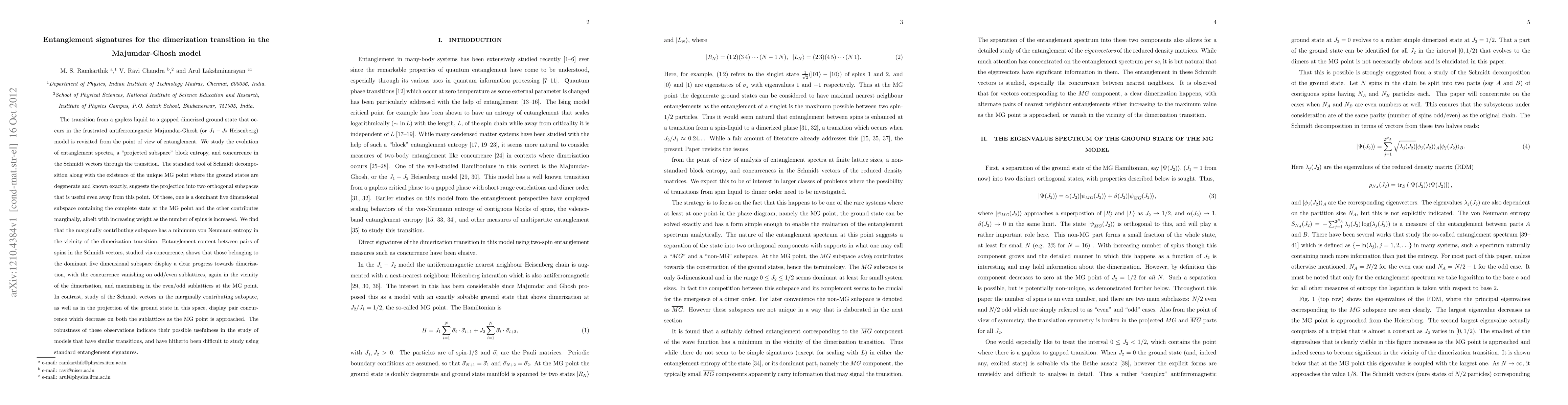 Researchers studied entanglement signatures in a model that undergoes a transition from gapless to gapped states, finding two key subspaces with different behaviors as the system approaches this transition; one subspace shows increasing concurrence towards dimerization, while the other decreases it.
