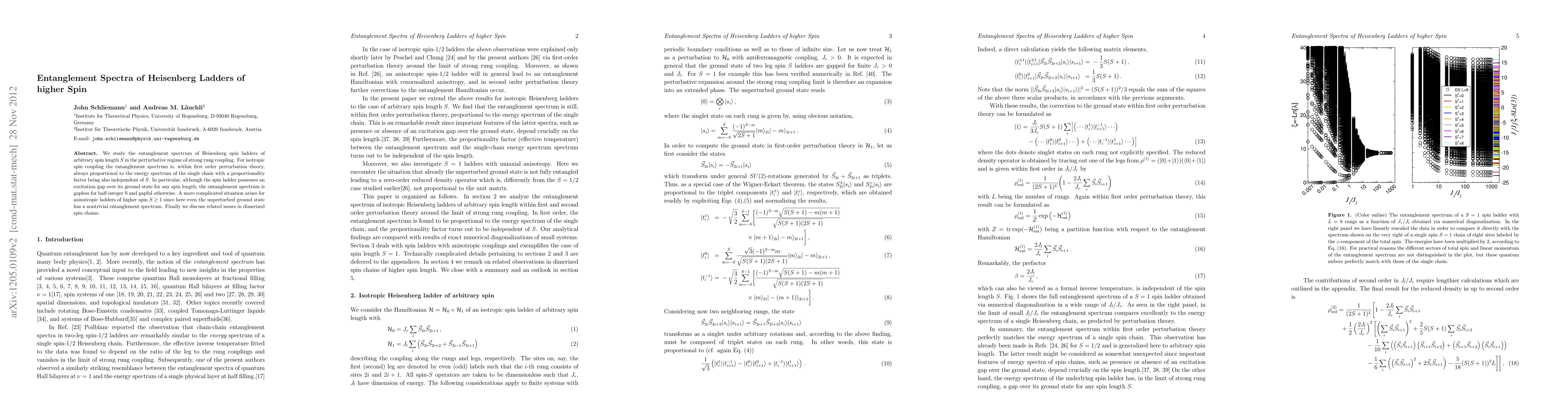 This paper investigates the entanglement spectrum of Heisenberg spin ladders with varying spin lengths under strong rung coupling. For isotropic couplings, the entanglement spectrum mirrors the single chain's energy spectrum. In contrast, anisotropic ladders with higher spin exhibit a nontrivial entanglement spectrum even in the ground state.
