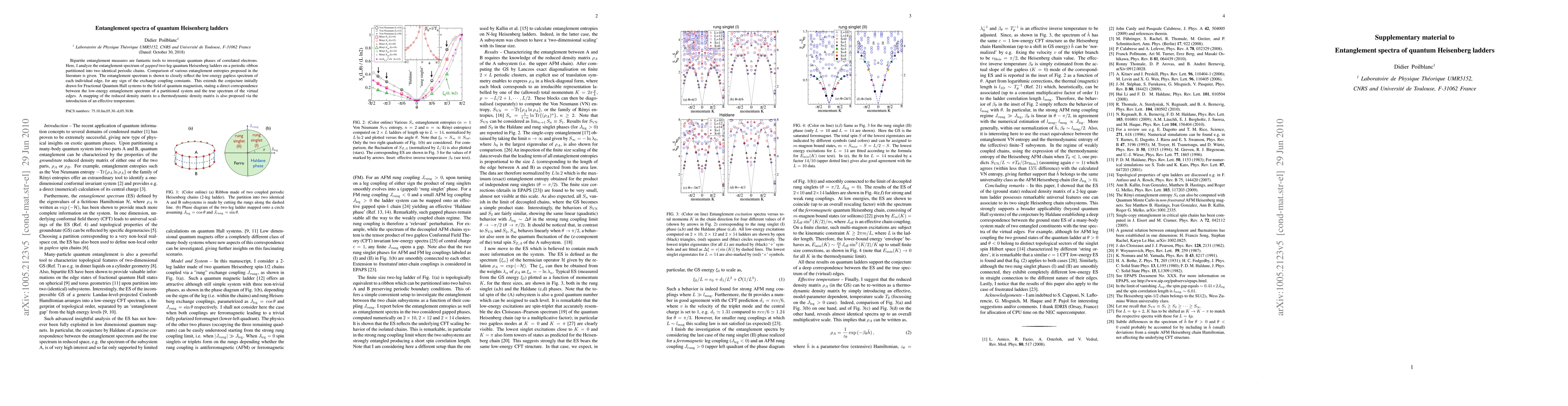 Bipartite entanglement measures are fantastic tools to investigate quantum phases of correlated electrons. Here, I analyze the entanglement spectrum of **gapped** two-leg quantum Heisenberg ladders on a periodic ribbon partitioned into two identical periodic chains. Comparison of various entanglement entropies proposed in the literature is given. The entanglement spectrum is shown to closely reflect the low-energy gapless spectrum of each individual edge, for any sign of the exchange coupling constants. This extends the conjecture initially drawn for Fractional Quantum Hall systems to the field of quantum magnetism, stating a direct correspondence between the low-energy entanglement spectrum of a partitioned system and the true spectrum of the "virtual edges". A mapping of the reduced density matrix to a thermodynamic density matrix is also proposed via the introduction of an effective temperature.
