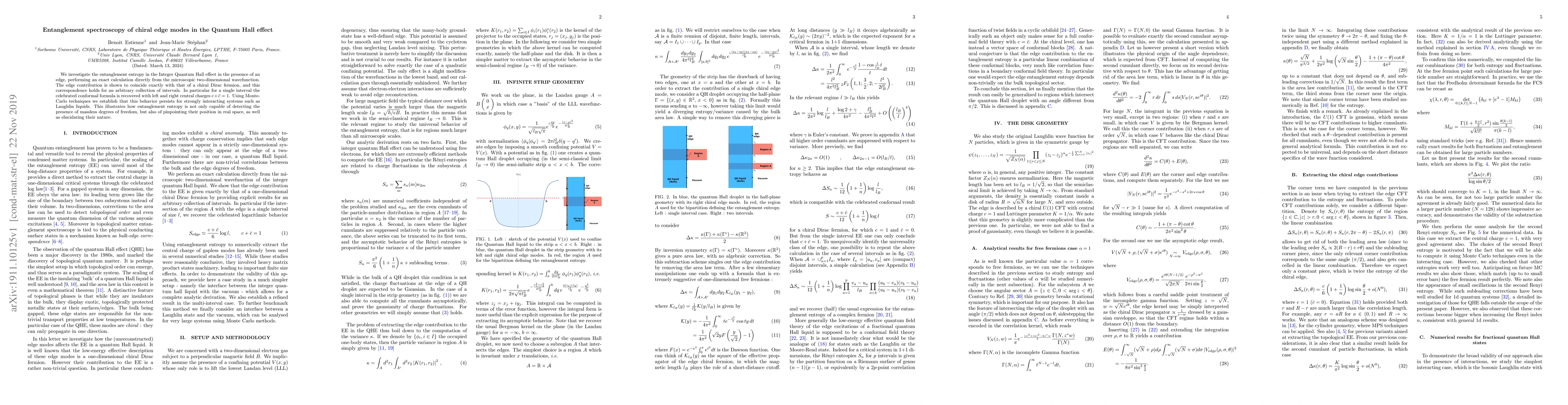 Researchers investigate entanglement entropy in the Quantum Hall effect with an edge, finding a correspondence between the edge's behavior and that of chiral Dirac fermions, which persists even in strongly interacting systems like Laughlin liquids.