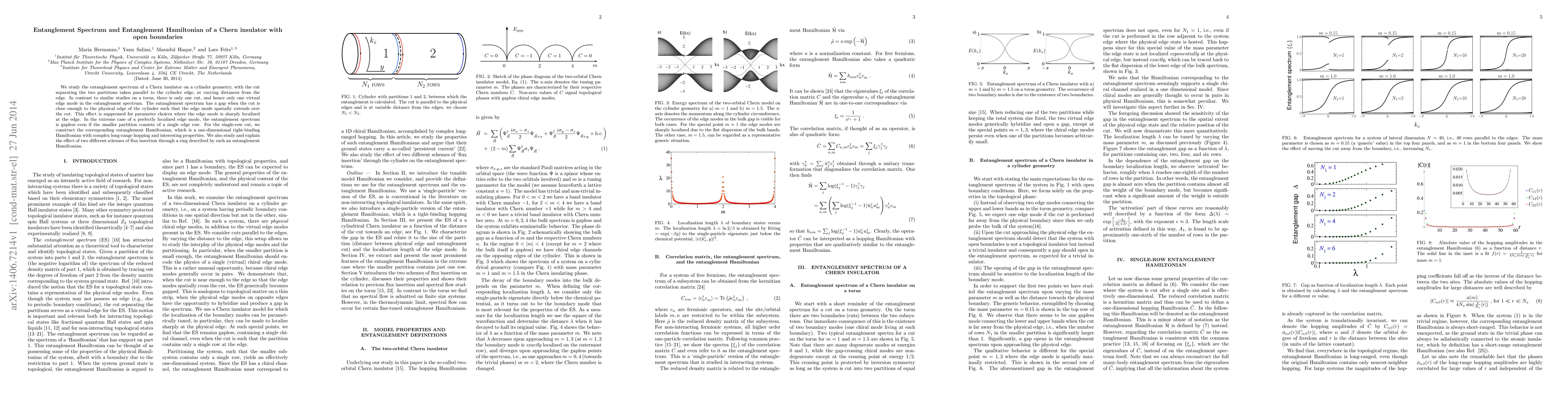 This paper investigates the entanglement spectrum of a Chern insulator on a cylindrical geometry with a single cut parallel to the edge, revealing a gap in the spectrum when the cut is sufficiently close to the edge, contrasting with sharp localization scenarios. The study also constructs an entanglement Hamiltonian for the single-row cut, featuring complex long-range hopping, and examines the effects of flux insertion schemes.