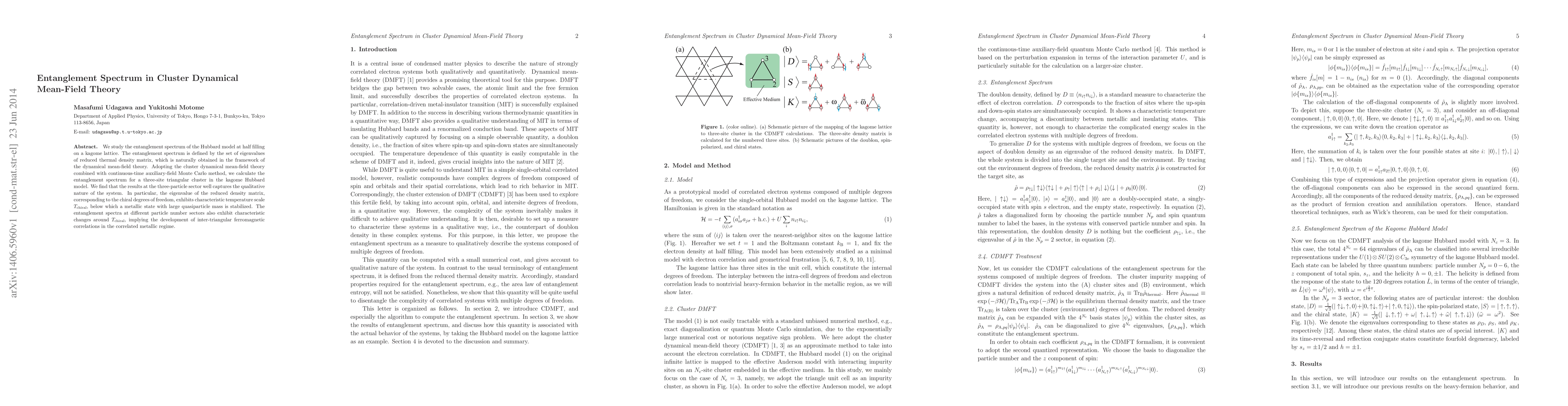 This paper investigates the entanglement spectrum of the Hubbard model on a kagome lattice using cluster dynamical mean-field theory and Monte Carlo simulations. The findings reveal that the three-particle sector captures the system's qualitative behavior, particularly highlighting a metallic phase transition at a temperature scale T_chiral, where inter-triangular ferromagnetic correlations emerge.