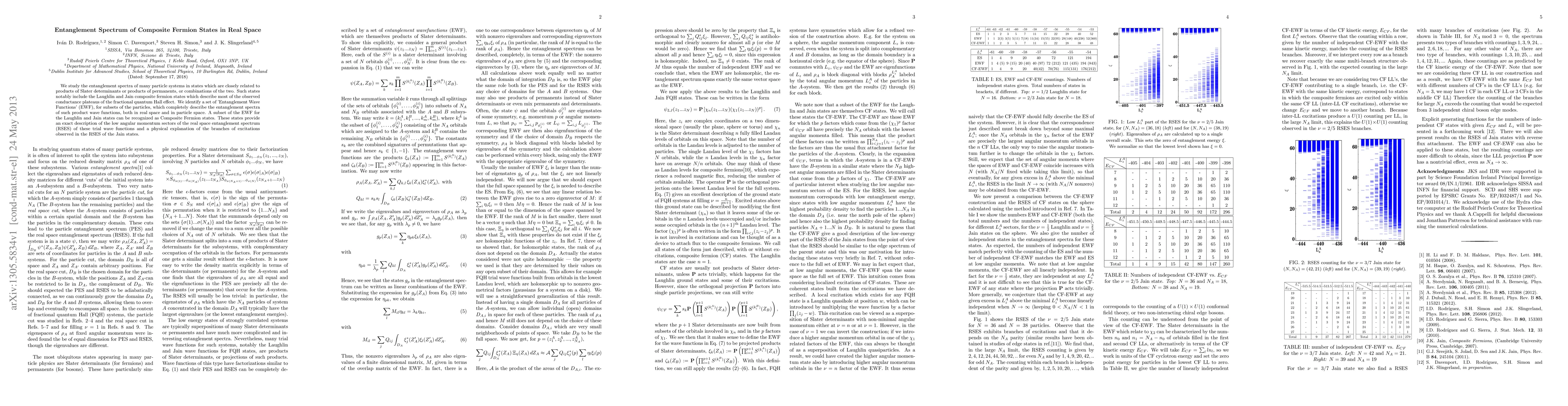 This paper explores the entanglement spectra of many-particle systems related to composite fermion states, including Laughlin and Jain states, and identifies 'Entanglement Wave Functions' that precisely describe these spectra, offering a physical explanation for observed excitation branches in real space.