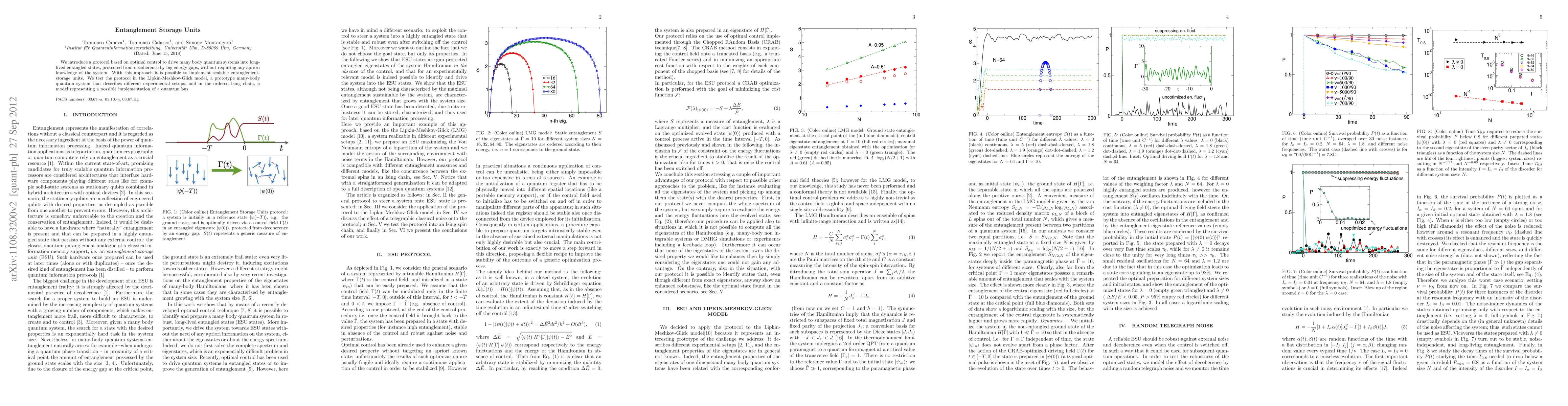 We introduce a protocol based on optimal control to drive many body quantum systems into long-lived entangled states, protected from decoherence by big energy gaps, without requiring any apriori knowledge of the system. With this approach it is possible to implement scalable entanglement-storage units. We test the protocol in the Lipkin-Meshkov-Glick model, a prototype many-body quantum system that describes different experimental setups, and in the ordered Ising chain, a model representing a possible implementation of a quantum bus.