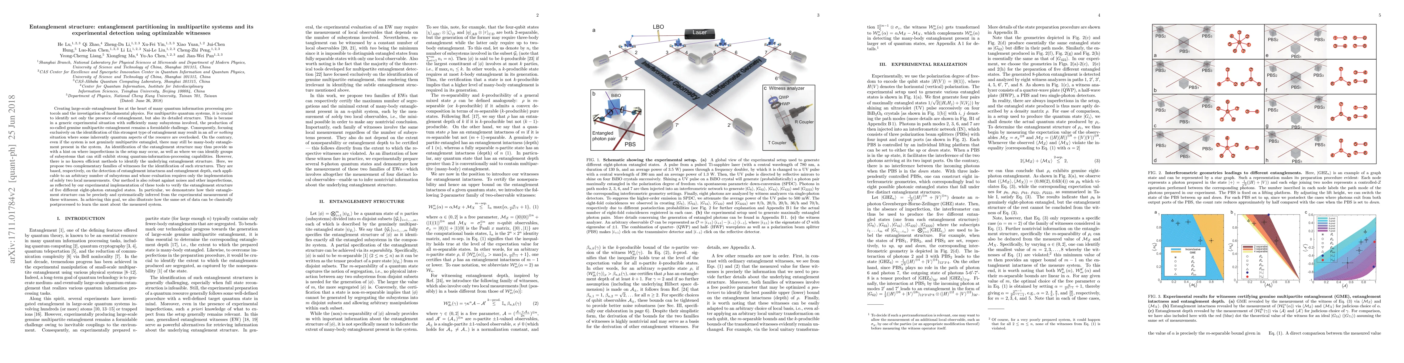 Creating large-scale entanglement lies at the heart of many quantum information processing protocols and the investigation of fundamental physics. For multipartite quantum systems, it is crucial to identify not only the presence of entanglement but also its detailed structure. This is because in a generic experimental situation with sufficiently many subsystems involved, the production of so-called genuine multipartite entanglement remains a formidable challenge. Consequently, focusing exclusively on the identification of this strongest type of entanglement may result in an all or nothing situation where some inherently quantum aspects of the resource are overlooked. On the contrary, even if the system is not genuinely multipartite entangled, there may still be many-body entanglement present in the system. An identification of the entanglement structure may thus provide us with a hint about where imperfections in the setup may occur, as well as where we can identify groups of subsystems that can still exhibit strong quantum-information-processing capabilities. However, there is no known efficient methods to identify the underlying entanglement structure. Here, we propose two complementary families of witnesses for the identification of such structures. They are based on the detection of entanglement intactness and entanglement depth, each requires only the implementation of solely two local measurements. Our method is also robust against noises and other imperfections, as reflected by our experimental implementation of these tools to verify the entanglement structure of five different eight-photon entangled states. We demonstrate how their entanglement structure can be precisely and systematically inferred from the experimental data. In achieving this goal, we also illustrate how the same set of data can be classically postprocessed to learn the most about the measured system.