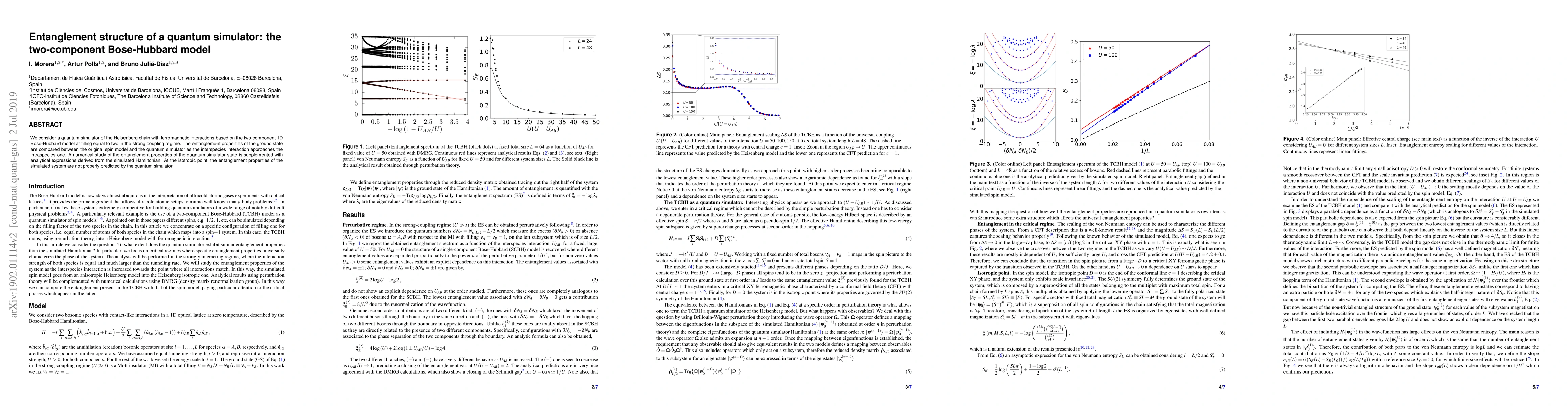 This paper investigates the entanglement structure of a quantum simulator based on the two-component Bose-Hubbard model, comparing it to the entanglement in the original Heisenberg chain. Analytical and numerical studies reveal that the quantum simulator fails to accurately predict entanglement properties at the isotropic point.