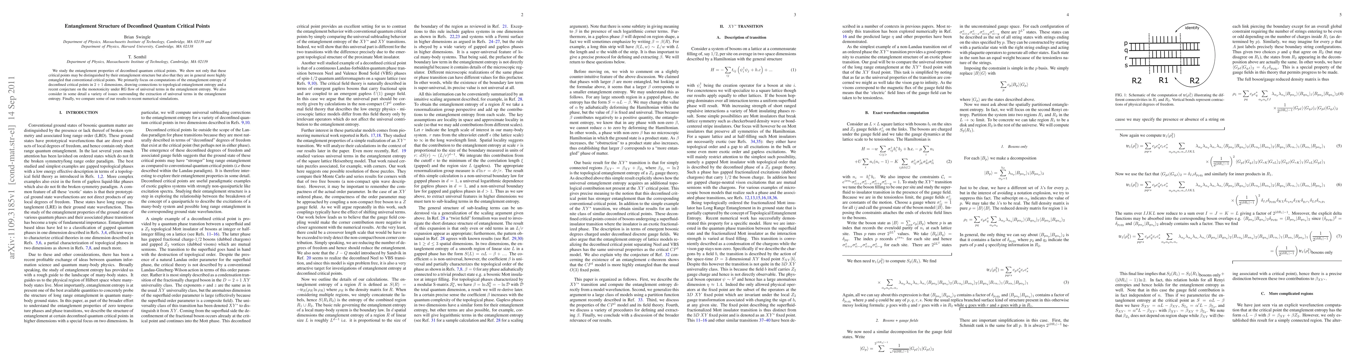 This paper investigates the entanglement structure of deconfined quantum critical points, demonstrating they exhibit greater entanglement compared to conventional critical points. It focuses on 2+1 dimensional systems, linking entanglement entropy to topological aspects and discussing implications for renormalization group flows.