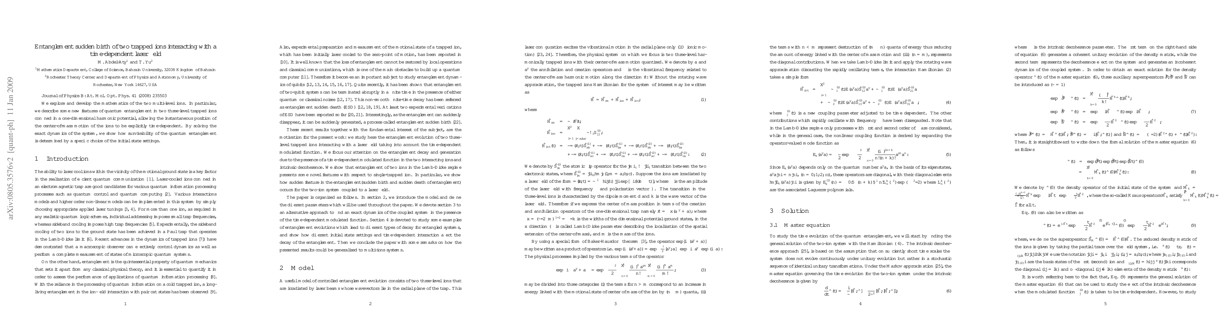 This paper investigates the dynamics of quantum entanglement in two three-level trapped ions under a time-dependent laser field, revealing new features of entanglement. The study finds that the survivability of entanglement depends on the specific initial state settings of the ions.