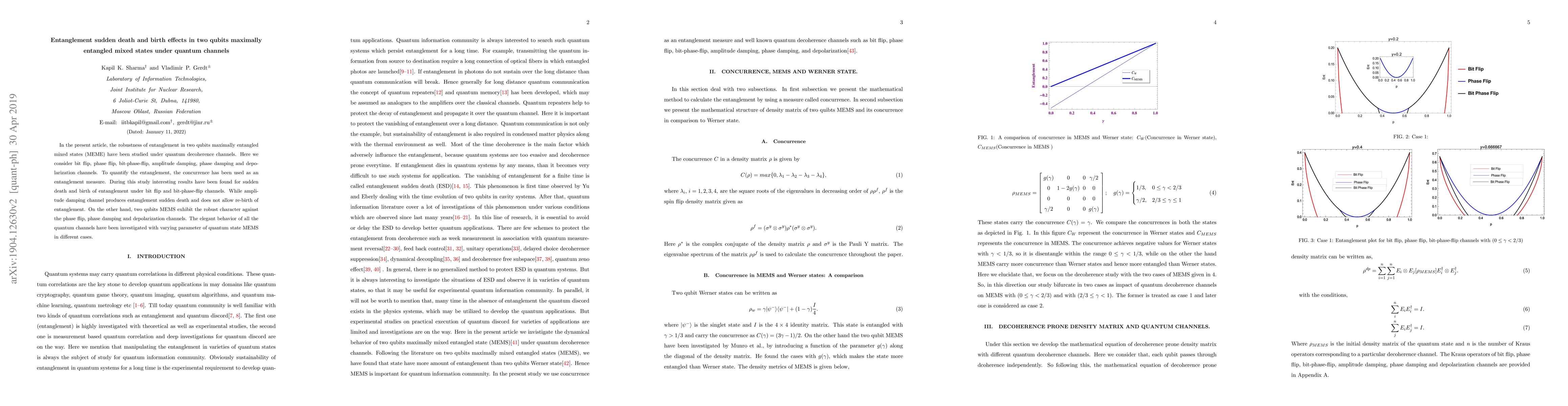 This paper investigates the robustness of entanglement in two qubits maximally entangled mixed states (MEME) under various quantum decoherence channels, using concurrence as a measure. It finds that entanglement can suddenly die and be reborn under bit flip and bit-phase-flip channels, while amplitude damping leads to permanent entanglement death. Phase flip, phase damping, and depolarization channels show robust entanglement preservation.