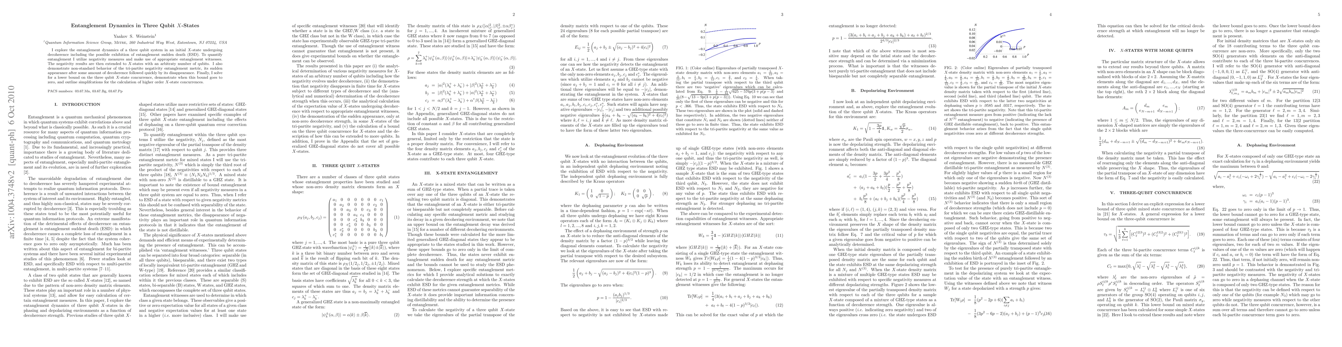 I explore the entanglement dynamics of a three qubit system in an initial X-state undergoing decoherence including the possible exhibition of entanglement sudden death (ESD). To quantify entanglement I utilize negativity measures and make use of appropriate entanglement witnesses. The negativity results are then extended to X-states with an arbitraty number of qubits. I also demonstrate non-standard behavior of the tri-partite negativity entanglement metric, its sudden appearance after some amount of decoherence followed quickly by its disappearance. Finally, I solve for a lower bound on the three qubit X-state concurrence, demonstrate when this bound goes to zero, and outline simplifcations for the calculation of higher order X-state concurrences.